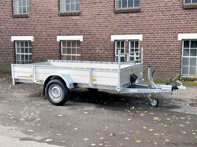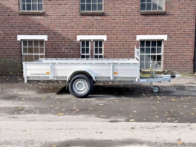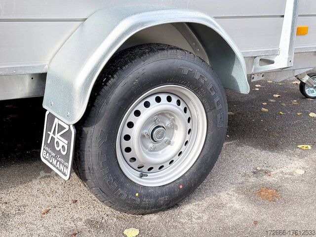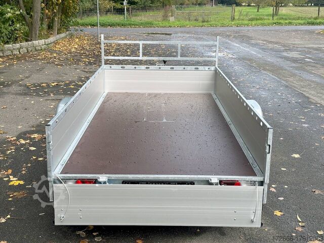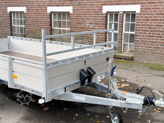 Hydraulics, automatic reversing, hot-dip galvanized, unbraked, * IMMEDIATELY AVAILABLE * Technical data: - Type: New vehicle with 2 years TÜV from first registration - TÜV: 2 years - Floor: Multiplex screen printing with anti-slip surface - Gross vehicle weight: 1,800 kg - Unladen weight: 399 kg - Payload: 1.401 kg - interior dimensions: 300 x 150 x 37 cm (L x W x H) - exterior dimensions: 431 x 198 x 132 cm (L x W x H) - loading sill height: 54 cm - tires: 185R14C steel rim - brakes: yes - jockey wheel: yes, automatic - incl. vehicle documents (letter) - 100 km/h for an extra charge. Standard equipment: - Anodized aluminium drop sides with profile channel from the outside - Accessories such as lashing eyes, tarpaulin buttons, hooks or hammerhead bolts can be easily fitted without drilling. - Finnish quality wooden floor - aluminium tailgate in proven Hapert look - dropside retaining ropes on tailgate - sturdy eccentric locks for the tailgate recessed in the dropside profile - very sturdy welded steel frame - frame completely hot-dip galvanized - many options available hot-dip galvanized - many sturdy cross members for high point loading - side wall struts on the sides (optimum lateral stability) - with integrated lashing holes - perforated railing on three sides 6cm (Combi-Protectrail) can also be used with locking bars and lashing straps - round holes 25mm, slotted holes 54x25mm - high front grille, 40cm removable - 6 lashing brackets recessed inside the side edge TÜV certified to 1000DaN / kg - maintenance-free rubber spring axle from BPW - automatic reverse drive - BPW overrun device and parking brake - hinges for tailgate welded to the frame - and with hooks for securing loads such as nets - very sturdyvery sturdy bolted V-drawbar REINFORCED - steel mudguards - 13-pin plug - reversing lights - generously dimensioned safety lighting - integrated rear fog light - lighting recessed in the rear frame - position lights in white at the front - preparation for rear supports - automatic support wheel in the middle Accessories optionally available: - Tarpaulin + bows - Supports, grids, side wall attachments, nets etc. New vehicle with warranty and TÜV. We are happy to offer you suitable financing !, Descriptions and pictures are protected by copyright !!! Over 800 trailers immediately available for you! We are for over 30 years Brian James / Humbaur / Hapert / Unsinn / Cheval Liberte / Koch / Debon / Stedele / TPV / Tohaco / Vezeko / Variant / Vlemmix - specialized dealer & repair - workshop - delivery Germany-wide with surcharge possible! Anhänger Zentrum BAUMANN GmbH Dinxperloer Str. 389 46399 Bocholt - Errors, omissions and prior sale reserved -
