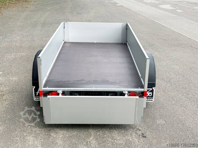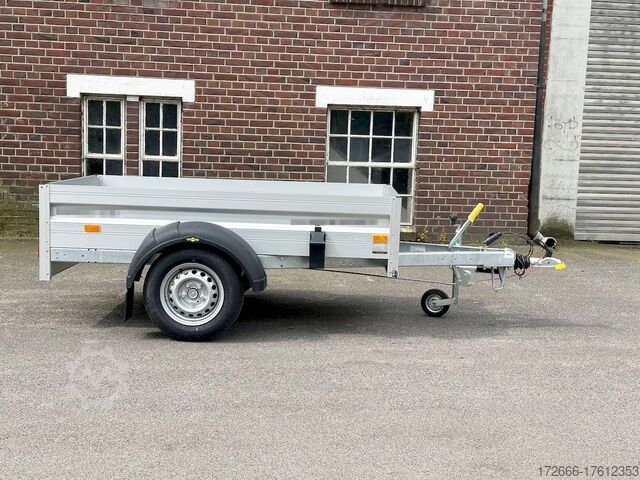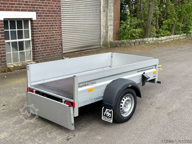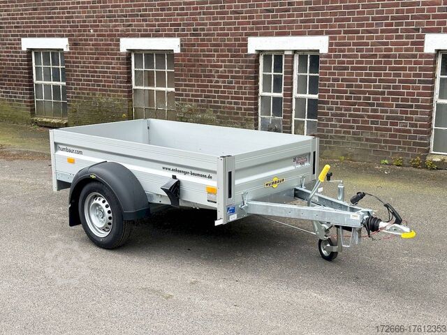 Hydraulics, automatic reverse drive, hot-dip galvanized, unbraked, folding front wall, aluminium drop sides, * IMMEDIATELY AVAILABLE * incl. folding front wall, aluminum drop sides Technical data: - Make: Humbaur - Model: HA 102111 - Vehicle type: Box trailer - Vehicle condition: New vehicle - First registration: Without first registration - TÜV/HU: 2 years from first registration - Internal dimensions (L x W x H): 205 x 110 x 35 cm - External dimensions (L x W x H): 323 x 156 x 89 cm - Loading height of the floor: 53 cm - Perm. Total weight: 1,000 kg - Unladen weight: 178 kg - Payload: 822 kg - Chassis: Low loader (wheels next to the body) - Tires: 155/80R13 - Chassis: ALKO rubber spring axle - Support wheel: Yes - 100 km/h approval: Optional, can be retrofitted EQUIPMENT - Brakes: Yes - Number of axles: 1 - Floor: Wooden floor - Drop sides: double-walled anodized aluminium - Drop side height: 35 cm - Drop sides foldable: front + rear - Removable drop sides: Rear dropside - Dropside hinges: 2 rear, riveted - Locks: Long lever locks, internal - Number of pallet spaces: 1 - Overrun device/brake: ALKO - Frame/chassis: Steel side members, bolted - Galvanization: Hot-dip galvanized - Drawbar: V-drawbar, continuous, U-profile - Drawbar length: 110 cm - Folding drawbar: No - Mudguards: Plastic mudguards - Superstructures/attachments: Optional, attachable - Supports: Optional, retrofittable - Lashing eyes: 4 - Rear lighting: Incandescent lamps, lamps recessed in rear frame - Side lighting: - - Plug for lighting: 13-pin - Vehicle documents: ZBII & COC papers DESCRIPTION - Anodized aluminium drop sides, double-walled - Screen-printed wooden floor, continuous without impact, slip-resistant and waterproof - Rear drop side foldable - Front drop side foldable - Long lever locks flush with drop side - Continuous side members - Frame compl. hot-dip galvanized - V-drawbar - plastic mudguards - insertion option at all 4 corners for tarpaulin frames, lattice attachment, side wall attachments or front wall extension - 4 lashing brackets inside the side edge (certified 400kg/dAN) - maintenance-free rubber spring axle from ALKO - automatic reverse drive - ALKO overrun device and parking brake - 13-pin plug - rear driving lights - large dimensionedrear driving lights - large safety lighting - integrated rear fog light - lighting recessed in rear frame - support wheel with central clamp Accessories can be retrofitted - please enquire: - rear supports - perforated railing on dropside - high front grid - high tarpaulin - dropside attachment 30cm - corrugated grid attachment 60cm - spare wheel - storage box - ramps - flat tarpaulin - additional lashing eyes - reversing lights - lashing straps - and much more. New vehicle with warranty and TÜV. We are happy to offer you suitable financing !, Descriptions and pictures are protected by copyright !!! Over 800 trailers immediately available for you! We are for over 30 years Brian James / Humbaur / Hapert / Unsinn / Cheval Liberte / Koch / Debon / Stedele / TPV / Tohaco / Vezeko / Variant / Vlemmix - specialized dealer & repair - workshop - delivery Germany-wide with surcharge possible! Anhänger Zentrum BAUMANN GmbH Dinxperloer Str. 389 46399 Bocholt - Errors, omissions and prior sale excepted -