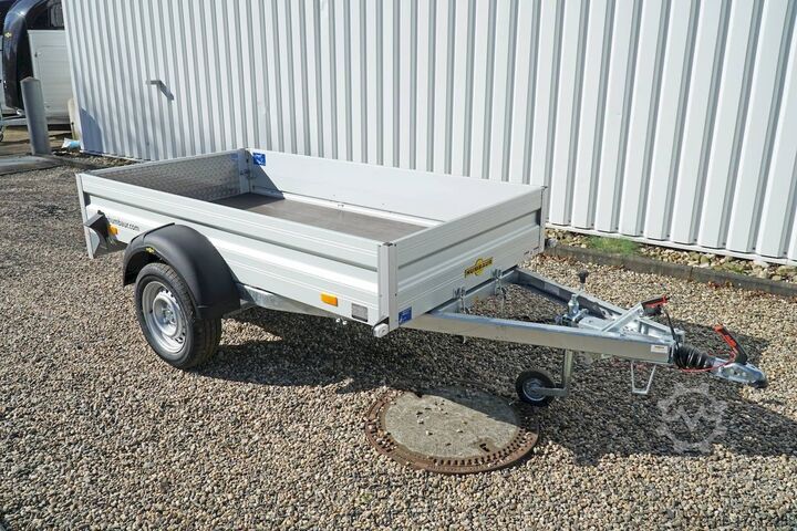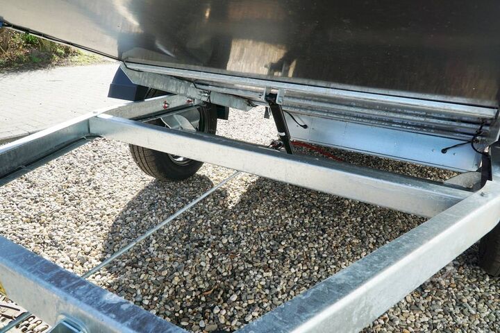 Hydraulics, automatic reverse drive, hot-dip galvanizing, unbraked, tiltable body, aluminium drop sides, * IMMEDIATELY AVAILABLE * incl. tiltable body, aluminium drop sides Technical data: - Type: New vehicle - TÜV: New/2 years - Availability: IMMEDIATELY! - Gross vehicle weight: 1,300 kg - Unladen weight: 254 kg - Payload: 1,046 kg - Interior dimensions: 251 x 131 x 35 cm (L x W x H) - Overall exterior dimensions: 380 x 181 x 90 cm (L x W x H) - Loading sill height: 57 cm - Tires: 185/65T14 steel rim - Brake: yes - Support wheel: included! - 100km/h: at extra charge - incl. vehicle documents Vehicle superstructure: - Floor: Wood, screen printing plate 15mm - Side walls: anodized aluminium double-walled 25mm - Side wall height: 35cm - Chassis: low loader, ALKO rubber spring axle - Folding side walls: front & rear - Hydraulics: no - Overrun device & brake: braked ALKO - Frame/chassis: V-drawbar - Attachment: at extra charge - Locks: Long lever locks / tension lock - Lashing eyes: 6 pieces in side wall (400kg/dAN) - Supports: at extra charge - Lighting plug: 13-pin - Approval: COC papers Standard equipment: - Bridge with shock absorber for tipping - Rear tipping angle with 18 - Reinforced tailgate and reinforced underride guard, up to max. 500 kg - double-walled anodized aluminium drop sides - folding rear drop side - folding front drop side - removable rear drop side - wooden floor - corner stanchions with insertion option for attachments or grids - maintenance-free rubber spring axles - axle with continuous axle beam and independent wheel suspension - 6 lashing brackets inside the side edge (certified 400kg/dAN) - long-lever locks flush with drop side - ALKO overrun device and parking brake - sturdy V-drawbar - 13-pin plug - reversing lights - large rear lights - large rear lights - rear lights. plug - reversing lights - large safety lighting - integrated rear fog light - lighting recessed in rear frame - registration papers: vehicle registration document (ZBII) & COC papers Accessories can be retrofitted - please enquire: - 2x rear supports - Perforated railing on dropside - High front grille - High tarpaulin - Dropside attachment - Corrugated grille attachment 60cm - Spare wheel - Storage box - Rear supports - Ramps - Flat tarpaulin - Additional lashing eyes - Slot-and-hole rails for tension belts & locking beams - Rod strip with rubber coating for tension belts & locking beams - Reversing lights - Lashing straps - and much more. New vehicle with warranty and TÜV. We are happy to offer you suitable financing !, Descriptions and pictures are protected by copyright !!! Over 800 trailers immediately available for you! We are for over 30 years Brian James / Humbaur / Hapert / Unsinn / Cheval Liberte / Koch / Debon / Stedele / TPV / Tohaco / Vezeko / Variant / Vlemmix - specialized dealer & repair - workshop - delivery Germany-wide with surcharge possible! Anhänger Zentrum BAUMANN GmbH Dinxperloer Str. 389 46399 Bocholt - Errors, omissions and prior sale reserved -