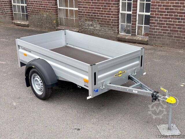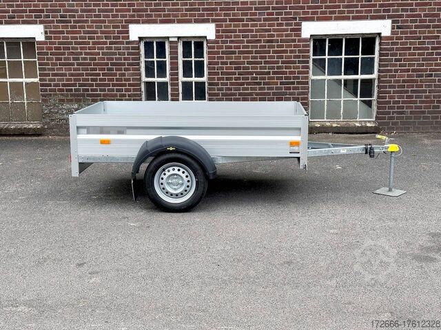 Hydraulics, automatic reverse drive, hot-dip galvanized, unbraked, lashing bracket, aluminium drop sides, front flap, * IMMEDIATELY AVAILABLE * incl. lashing bracket, aluminium drop sides, front flap Technical data: - Type: New vehicle - TÜV: New/2 years - Availability: IMMEDIATELY! - Gross vehicle weight: 750kg - Unladen weight: 140 kg - Payload: 610 kg - Interior dimensions: 205 x 110 x 35 cm (L x W x H) - Overall exterior dimensions: 302 x 155 x 86 cm (L x W x H) - Loading sill height: 51 cm - Tires: 145/80R13 steel rim - Brake: no - Support wheel: at extra charge - 100km/h: included! - incl. vehicle documents Vehicle superstructure: - Floor: Wood, screen printing plate 15mm - Drop sides: anodized aluminium double-walled 25mm - Drop side height: 35cm - Chassis: low loader, rubber spring axle - Folding drop sides: rear & front - Hydraulics: no - Overrun device & brake: unbraked - Frame/chassis: V-traction fork - Attachment: at extra charge - Locks: Long lever locks - Lashing eyes: 4 pieces in side wall (400kg/dAN) - Supports: at extra cost Supports: at extra cost - Lighting plug: 13-pin - Approval: ZBII & COC papers Standard equipment: - Anodized double-walled aluminium drop sides - Rear drop side foldable - Rear drop side removable - Wooden floor - Corner stanchions with insertion option for attachments or grids - 100 km/h registration - Maintenance-free rubber spring axles - Axle with continuous axle beam and independent wheel suspension - 4 lashing brackets inside in the side wall (certified 400kg/dAN) - Long lever locks flush with drop side - Sturdy V-drawbar - 13-pin plug - Reversing lights - Large plug: 13-pin - Rear lights - Rear lights - Large plug: 13-pin - Rear lights - Rear lights - Large plug: 13-pin. plug - reversing lights - large safety lighting - integrated rear fog light - lighting recessed in rear frame - registration papers: vehicle registration document (ZBII) & COC papers Accessories can be retrofitted - please enquire: - Perforated railing on dropside - High front grille - High tarpaulin - Dropside attachment - Corrugated grille attachment 60cm - Spare wheel - Storage box - Rear supports - Ramps - Flat tarpaulin - Additional lashing eyes - Slot-and-hole rails for tension belts & locking beams - Rod strip with rubber coating for tension belts & locking beams - Reversing lights - Lashing straps - and much more. New vehicle with warranty and TÜV. We are happy to offer you suitable financing !, Descriptions and pictures are protected by copyright !!! Over 800 trailers immediately available for you! We are for over 30 years Brian James / Humbaur / Hapert / Unsinn / Cheval Liberte / Koch / Debon / Stedele / TPV / Tohaco / Vezeko / Variant / Vlemmix - specialized dealer & repair - workshop - delivery Germany-wide with surcharge possible! Anhänger Zentrum BAUMANN GmbH Dinxperloer Str. 389 46399 Bocholt - Errors, omissions and prior sale reserved -