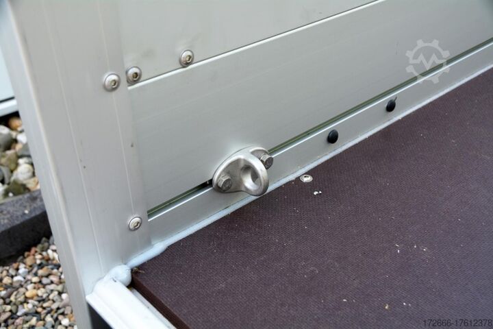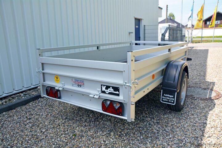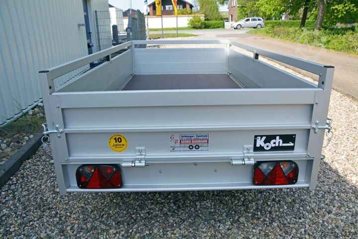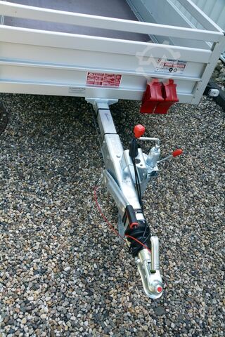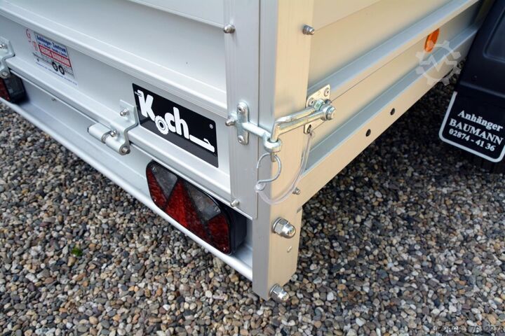 Hydraulics, automatic reverse, hot-dip galvanized, unbraked, * IMMEDIATELY AVAILABLE * Technical data: - Type: new vehicle - Availability: immediately!!! - TÜV: 2 years from first registration - Floor: Multiplex screen printing with anti-slip surface - Gross vehicle weight: 1,200 kg - Unladen weight: 240 kg - Load capacity: 960 kg - Internal dimensions: 250 x 125 x 45 cm (L x W x H) - External dimensions: 383 x 179 x 96 cm (L x W x H) - Loading sill height: 50 cm - Tires: 185/65R14 - Brake: yes - Support wheel: yes - 100km/h: INCLUDED !!! - incl. vehicle documents (letter) Standard equipment: - Double-walled anodized aluminium dropsides 30 mm, with integrated aluminium frame - Dropside with load securing system Accessories such as lashing eyes can be easily fitted without drilling. - Stainless steel lashing lugs (V2A stainless steel) - Sturdy screen-printed base plate, non-slip (birch wood, maintenance-free, hot-dip galvanized rubber spring axle - ALKO overrun device and parking brake - chassis and drawbar from renowned manufacturer ALKO - automatic reverse function - brake cables with Profi-Longlife (plastic coating of the steel wire strands) - 2x wheel chocks with bracket - fitted with balanced 1A brand tires as standard - large 185/65R14 tires - safety indicator on the coupling - plastic mudguards - tailgate can be easily removed - 13-pin plug - reversing light - large rear lights plug - reversing light - large safety lighting - integrated rear fog light - lighting recessed in the rear frame - M8 stainless steel (V2A stainless steel) screw connection - clear operating sign with the most important data (tire pressure, cable assignment...) - including 10-year Koch warranty Accessories optionally available: - High grille at the front - Tarpaulin + bows - Supports, grilles, side wall attachments, nets, etc. New vehicle with warranty and TÜV. We are happy to offer you suitable financing !, Descriptions and pictures are protected by copyright !!! Over 800 trailers immediately available for you! We are for over 30 years Brian James / Humbaur / Hapert / Unsinn / Cheval Liberte / Koch / Debon / Stedele / TPV / Tohaco / Vezeko / Variant / Vlemmix - specialized dealer & repair - workshop - delivery Germany-wide with surcharge possible! Anhänger Zentrum BAUMANN GmbH Dinxperloer Str. 389 46399 Bocholt - Errors, omissions and prior sale reserved -