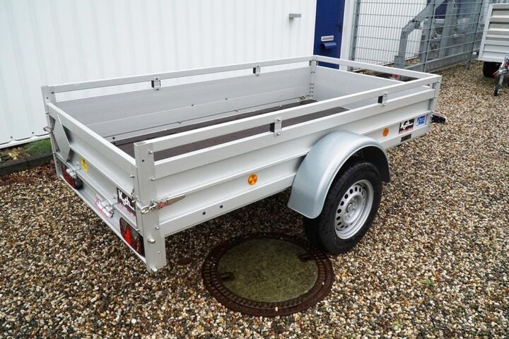 Hydraulics, automatic reverse, hot-dip galvanized, unbraked, * IMMEDIATELY AVAILABLE * Technical data: - Type: New vehicle - Availability: Immediately!!! - TÜV: 2 years from first registration - Floor: Multiplex screen printing with anti-slip surface - Gross vehicle weight: 1,300 kg - Unladen weight: 240 kg - Payload: 1,060 kg - Internal dimensions: 250 x 125 x 45 cm (L x W x H) - External dimensions: 383 x 179 x 96 cm (L x W x H) - Loading sill height: 50 cm - Tires: 195/70R14 - Brake: yes - Support wheel: yes - 100km/h: INCLUDED !!! - incl. vehicle documents (letter) Standard equipment: - Double-walled anodized aluminium dropsides 30 mm, 440 mm high with integrated aluminium frame and elaborate lashing rail - Elaborate longitudinal beams (2 longitudinal beams) - Dropside with load securing system Accessories such as lashing eyes can be easily fitted without drilling. - Lashing anchor made of stainless steel (V2A stainless steel) - Floor plate stable screen-printed floor, non-slip (birch wood, waterproof glued) - Very stable locks for the tailgate made of V2A stainless steel (unique) - Maintenance-free hot-dip galvanized rubber spring axle - Chassis and drawbar from renowned manufacturer ALKO - Safety indicator on the coupling - Brake cables with Profi-Longlife as standard (plastic coating of the steel wire strands) - Steel mudguards - Tailgate can be easily removed - 13-pin plug - Reversing lights - Large reversing lights - Rear lights - Steel mudguards - Rear lights - Rear lights - Rear lights - Large rear lights. plug - reversing light - large safety lighting - integrated rear fog light - lighting recessed in the rear frame - fitted with balanced 1A brand tires as standard - all M8 stainless steel (V2A stainless steel) screw fittings - clear operating plate with the most important data (tire pressure, cable assignment, etc.) - 100 km/h approval: Included! - Incl. transfer costs - Incl. vehicle registration document Accessories optionally available: - High front grille - Tarpaulin + bows - Supports, grilles, side wall attachments, nets, etc. New vehicle with warranty and TÜV. We are happy to offer you suitable financing !, Descriptions and pictures are protected by copyright !!! Over 800 trailers immediately available for you! We are for over 30 years Brian James / Humbaur / Hapert / Unsinn / Cheval Liberte / Koch / Debon / Stedele / TPV / Tohaco / Vezeko / Variant / Vlemmix - specialized dealer & repair - workshop - delivery Germany-wide with surcharge possible! Anhänger Zentrum BAUMANN GmbH Dinxperloer Str. 389 46399 Bocholt - Errors, omissions and prior sale reserved -