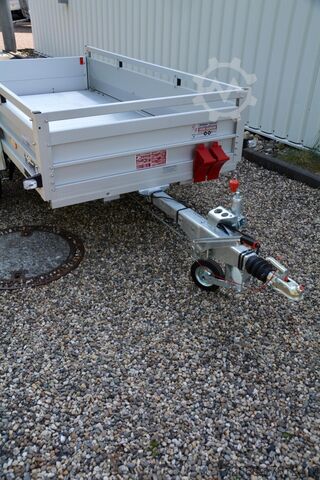 Hydraulics, automatic reverse, hot-dip galvanized, unbraked, * IMMEDIATELY AVAILABLE * Technical data: - Type: New vehicle - Availability: Immediately!!! - TÜV: 2 years from first registration - Floor: Aluminum floor - permissible total weight: 1,300 kg - empty weight: 240 kg - load capacity: 1,060 kg - interior dimensions: 250 x 125 x 45 cm (L x W x H) - exterior dimensions: 383 x 179 x 96 cm (L x W x H) - loading sill height: 50 cm - tires: 195/70R14 - brakes: yes - jockey wheel: yes - 100km/h: INCLUDED !!! - incl. vehicle documents (letter) Standard equipment: - Double-walled anodized aluminium dropsides 30 mm, 440 mm high with integrated aluminium frame and elaborate lashing rail - Elaborate longitudinal beams (2 longitudinal beams) - Dropside with load securing system Accessories such as lashing eyes can be easily fitted without drilling. - Lashing anchor made of stainless steel (V2A stainless steel) - Floor plate stable screen-printed floor, non-slip (birch wood, waterproof glued) - Very stable locks for the tailgate made of V2A stainless steel (unique) - Maintenance-free hot-dip galvanized rubber spring axle - Chassis and drawbar from renowned manufacturer ALKO - Safety indicator on the coupling - Brake cables with Profi-Longlife as standard (plastic coating of the steel wire strands) - Steel mudguards - Tailgate can be easily removed - 13-pin plug - Reversing lights - Large reversing lights - Rear lights - Steel mudguards - Rear lights - Rear lights - Rear lights - Large rear lights. plug - reversing light - large safety lighting - integrated rear fog light - lighting recessed in the rear frame - fitted with balanced 1A brand tires as standard - all M8 stainless steel (V2A stainless steel) screw fittings - clear operating plate with the most important data (tire pressure, cable assignment, etc.) - 100 km/h approval: Included! - Incl. transfer costs - Incl. vehicle registration certificate Special equipment included in the price: - Full aluminum floor - Complete aluminum floor with ribbed surface. This means the floor lasts almost forever. Optional accessories available: - High grille at the front - Tarpaulin + bows - Supports, grilles, side wall attachments, nets, etc. New vehicle with warranty and TÜV. We are happy to offer you suitable financing !, Descriptions and pictures are protected by copyright !!! Over 800 trailers immediately available for you! We are for over 30 years Brian James / Humbaur / Hapert / Unsinn / Cheval Liberte / Koch / Debon / Stedele / TPV / Tohaco / Vezeko / Variant / Vlemmix - specialized dealer & repair - workshop - delivery Germany-wide with surcharge possible! Anhänger Zentrum BAUMANN GmbH Dinxperloer Str. 389 46399 Bocholt - Errors, omissions and prior sale excepted -