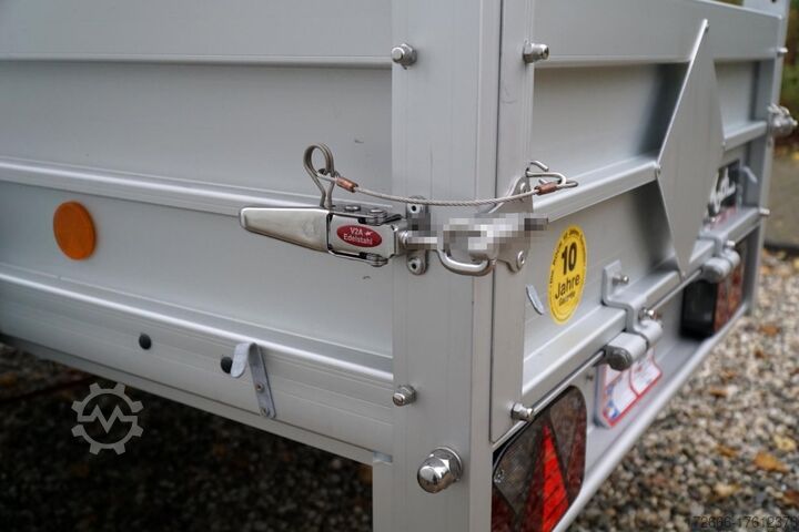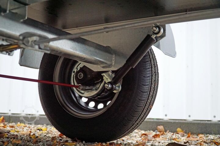 Hydraulics, automatic reverse, hot-dip galvanized, unbraked, * IMMEDIATELY AVAILABLE * Technical data: - Type: new vehicle - Availability: immediately!!! - TÜV: 2 years from first registration - Floor: Multiplex screen printing with anti-slip surface - Gross vehicle weight: 1,000 kg - Unladen weight: 160 kg - Load capacity: 840 kg - Internal dimensions: 205 x 105 x 45 cm (L x W x H) - External dimensions: 306 x 157 x 96 cm (L x W x H) - Loading sill height: 50 cm - Tires: 185/70R13 - Brake: yes - Support wheel: yes - 100km/h: INCLUDED !!! - incl. vehicle documents (letter) Standard equipment: - Double-walled anodized aluminium dropsides 30 mm, 440 mm high with integrated aluminium frame and elaborate lashing rail - Elaborate longitudinal beams (2 longitudinal beams) - Dropside with load securing system Accessories such as lashing eyes can be easily fitted without drilling. - Lashing anchor made of stainless steel (V2A stainless steel) - Floor plate stable screen-printed floor, non-slip (birch wood, waterproof glued) - Very stable locks for the tailgate made of V2A stainless steel (unique) - Maintenance-free, hot-dip galvanized rubber spring axle - Chassis and drawbar from renowned manufacturer ALKO - Safety indicator on the coupling - Brake cables with Profi-Longlife as standard (plastic coating of the steel wire strand) - Steel mudguards - Tailgate can be easily removed - 13-pin plug - Reversing lights - Large reversing lights plug - reversing light - large safety lighting - integrated rear fog light - lighting recessed in the rear frame - fitted with balanced 1A brand tires as standard - all M8 stainless steel (V2A stainless steel) screw fittings - clear operating plate with the most important data (tire pressure, cable assignment, etc.) - 100 km/h approval: Included! - Incl. transfer costs - Incl. vehicle registration document & COC papers Accessories optionally available: - High front grille - Tarpaulin + bows - Supports, grilles, side wall attachments, nets, etc. New vehicle with warranty and TÜV. We are happy to offer you suitable financing !, Descriptions and pictures are protected by copyright !!! Over 800 trailers immediately available for you! We are for over 30 years Brian James / Humbaur / Hapert / Unsinn / Cheval Liberte / Koch / Debon / Stedele / TPV / Tohaco / Vezeko / Variant / Vlemmix - specialized dealer & repair - workshop - delivery Germany-wide with surcharge possible! Anhänger Zentrum BAUMANN GmbH Dinxperloer Str. 389 46399 Bocholt - Errors, omissions and prior sale reserved -