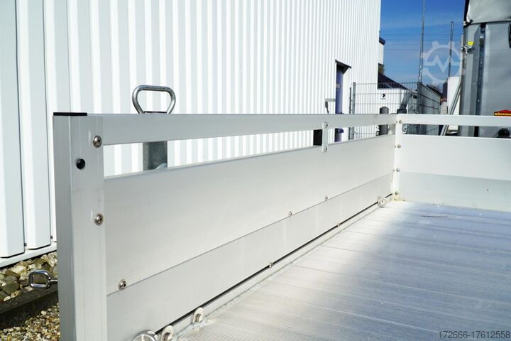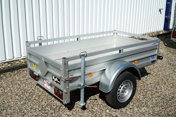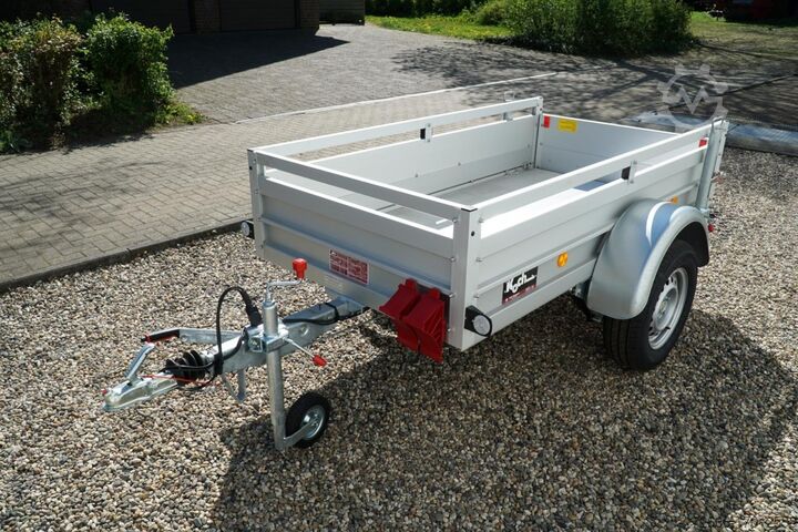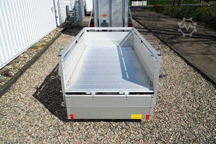 Hydraulics, automatic reverse, hot-dip galvanized, unbraked, * IMMEDIATELY AVAILABLE * Technical data: - Type: New vehicle - Availability: Immediately!!! - TÜV: 2 years from first registration - Floor: all-aluminum floor! - permissible total weight: 1,000 kg - unladen weight: 160 kg - load capacity: 840 kg - interior dimensions: 205 x 105 x 45 cm (L x W x H) - exterior dimensions: 306 x 157 x 96 cm (L x W x H) - loading sill height: 50 cm - tyres: 185/70R13 - brakes: yes - jockey wheel: yes - 100km/h: INCLUDED !!! - incl. vehicle documents (letter) Standard equipment: - Double-walled anodized aluminium dropsides 30 mm, 440 mm high with integrated aluminium frame and elaborate lashing rail - Elaborate longitudinal beams (2 longitudinal beams) - Dropside with load securing system Accessories such as lashing eyes can be easily fitted without drilling. - Very sturdy locks for the tailgate made of V2A stainless steel (unique) - Maintenance-free, hot-dip galvanized rubber spring axle - Chassis and drawbar from renowned manufacturer ALKO - Safety indicator on the coupling - Brake cables with Profi-Longlife (plastic coating of the steel wire strands) as standard - Steel mudguards - Tailgate can be easily removed - 13-pin plug - Reversing lights - Large reversing lights - Steel fenders Plug - reversing light - large safety lighting - integrated rear fog light - lighting recessed in the rear frame - fitted with balanced 1A brand tires as standard - M8 stainless steel (V2A stainless steel) screw connection - clear operating plate with the most important data (tire pressure, cable assignment, etc.) - 100 km/h approval: Included! - Incl. transfer costs - Incl. vehicle registration document & COC papers Special equipment included in the price: - Full aluminum floor - Complete aluminum floor with ribbed surface. This means the floor lasts almost forever. Optional accessories available: - High grille at the front - Tarpaulin + bows - Supports, grilles, side wall attachments, nets e New vehicle with warranty and TÜV. We are happy to offer you suitable financing !, Descriptions and pictures are protected by copyright !!! Over 800 trailers immediately available for you! We are for over 30 years Brian James / Humbaur / Hapert / Unsinn / Cheval Liberte / Koch / Debon / Stedele / TPV / Tohaco / Vezeko / Variant / Vlemmix - specialized dealer & repair - workshop - delivery Germany-wide with surcharge possible! Anhänger Zentrum BAUMANN GmbH Dinxperloer Str. 389 46399 Bocholt - Errors, omissions and prior sale excepted -