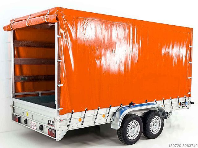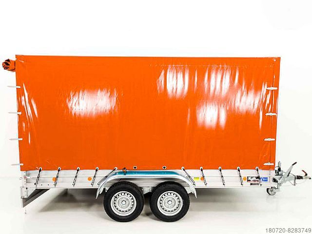 Low loader trailer 185x400cm, 2600kg, "Type 10.26" high tarpaulin 200cm orange