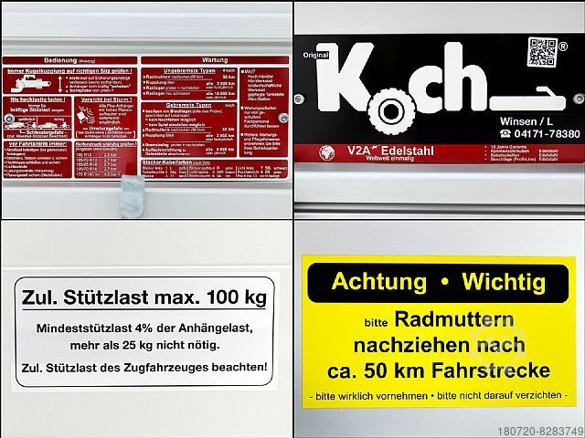 Type 10.26 car trailer with a loading dimension of 185 x 400 x 45cm. Lightweight aluminum trailer with a permissible total weight of 2600kg and a payload of 2090kg including a 10-year warranty. Koch-Anhängerwerke has been manufacturing quality trailers made in Germany for over 30 years.