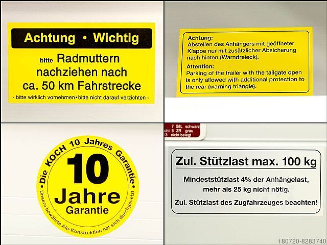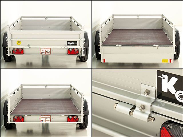 Type 7.20 Hobby Line car trailer with a loading dimension of 150 x 300 x 45cm. Lightweight aluminum trailer with a permissible total weight of 2000kg and a payload of 1590kg including a 10-year warranty. Koch-Anhängerwerke has been manufacturing quality trailers made in Germany for over 30 years.