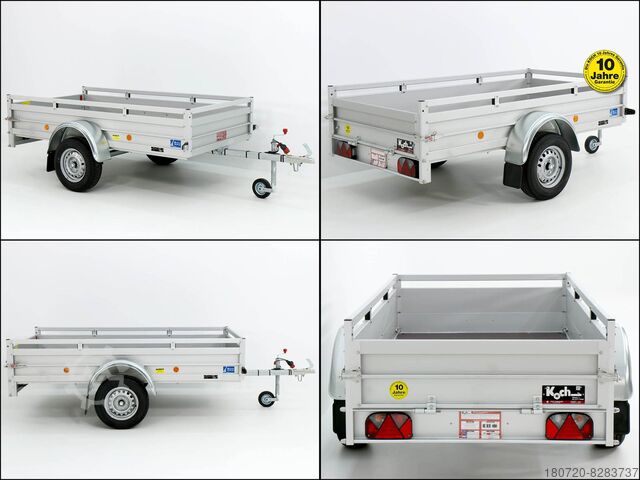 Type U4 car trailer with a loading dimension of 125 x 250 x 150cm. Lightweight aluminum trailer with a permissible total weight of 750kg and a payload of 570kg including a 10-year warranty. Koch-Anhängerwerke has been manufacturing quality trailers made in Germany for over 30 years.