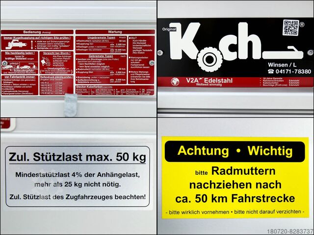 Koch trailer 125x250cm, 750kg, "Type U4" with high tarpaulin 150cm