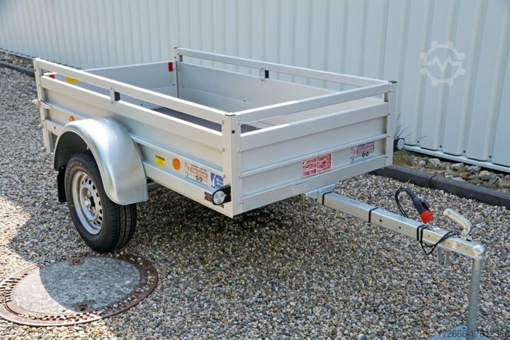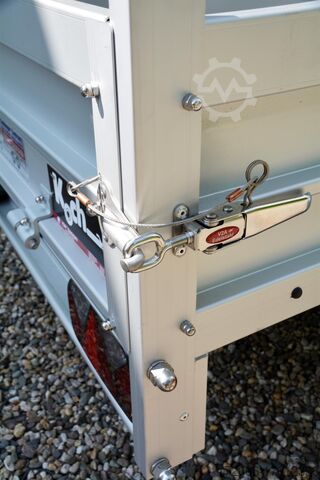 Hydraulics, automatic reverse, hot-dip galvanized, unbraked, * IMMEDIATELY AVAILABLE * Technical data: - Type: New vehicle - Availability: Immediately!!! - TÜV: 3 years from first registration - Floor: Multiplex screen printing with anti-slip surface - Gross vehicle weight: 750 kg - Unladen weight: 130 kg - Load capacity: 620 kg - Internal dimensions: 205 x 105 x 45 cm (L x W x H) - External dimensions: 306 x 157 x 96 cm (L x W x H) - Loading sill height: 50 cm - Brake: no - Support wheel: at extra charge - 100km/h: INCLUDED !!! - incl. vehicle documents (letter) Standard equipment: - Double-walled anodized aluminium drop sides 30 mm, with integrated aluminium frame - Drop side with load securing system Accessories such as lashing eyes can be easily mounted without drilling. - Stainless steel lashing rings (V2A stainless steel) - Sturdy screen-printed floor plate, non-slip (birch wood, waterproof glued) - Very sturdy locks for the tailgate made of V2A stainless steel (unique) - Maintenance-free, hot-dip galvanized rubber spring axle - Chassis and drawbar from renowned manufacturer ALKO - Safety indicator on the coupling - Steel mudguards - Tailgate can be easily removed - 13-pin plug - Reversing light - Large reversing light - Steel mudguards plug - reversing lights - large safety lighting - integrated rear fog light - lighting recessed in the rear frame - fitted with balanced 1A brand tires as standard - M8 stainless steel (V2A stainless steel) screw connection - clear operating sign with the most important data (tire pressure, cable assignment, etc.) - incl. transfer costs - incl. vehicle registration document Accessories optionally available: - High front grille - Tarpaulin + bows - Supports, grilles, side wall attachments, nets, etc. New vehicle with warranty and TÜV. We are happy to offer you suitable financing !, Descriptions and pictures are protected by copyright !!! Over 800 trailers immediately available for you! We are for over 30 years Brian James / Humbaur / Hapert / Unsinn / Cheval Liberte / Koch / Debon / Stedele / TPV / Tohaco / Vezeko / Variant / Vlemmix - specialized dealer & repair - workshop - delivery Germany-wide with surcharge possible! Anhänger Zentrum BAUMANN GmbH Dinxperloer Str. 389 46399 Bocholt - Errors, omissions and prior sale excepted -