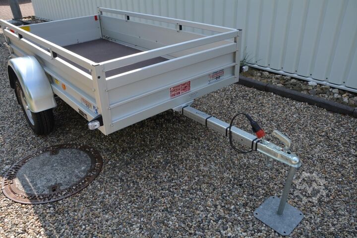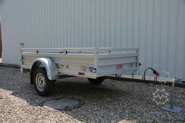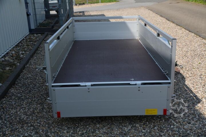 Hydraulics, automatic reverse drive, hot-dip galvanized, unbraked, * IMMEDIATELY AVAILABLE * Technical data: - Type: New vehicle - Availability: Immediately!!! - TÜV: 3 years from first registration - Floor: Multiplex screen printing with anti-slip surface - Gross vehicle weight: 750 kg - Unladen weight: 180 kg - Load capacity: 570 kg - Internal dimensions: 250 x 125 x 45 cm (L x W x H) - External dimensions: 359 x 179 x 96 cm (L x W x H) - Loading sill height: 50 cm - Tires: 185/70R13 - Brakes: no - Support wheel: at extra charge - 100km/h: INCLUDED !!! - incl. vehicle documents (letter) Standard equipment: - Double-walled anodized aluminium drop sides 30 mm, with integrated aluminium frame - Drop side with load securing system Accessories such as lashing eyes can be easily mounted without drilling. - Stainless steel lashing rings (V2A stainless steel) - Sturdy screen-printed floor plate, non-slip (birch wood, waterproof glued) - Very sturdy locks for the tailgate made of V2A stainless steel (unique) - Maintenance-free, hot-dip galvanized rubber spring axle - Chassis and drawbar from renowned manufacturer ALKO - Safety indicator on the coupling - Steel mudguards - Tailgate can be easily removed - 13-pin plug - Reversing lights - Large reversing light - Steel mudguards plug - reversing lights - large safety lighting - integrated rear fog light - lighting recessed in the rear frame - fitted with balanced 1A brand tires as standard - M8 stainless steel (V2A stainless steel) screw connection - clear operating sign with the most important data (tire pressure, cable assignment, etc.) - incl. transfer costs - incl. vehicle registration document Accessories optionally available: - High front grille - Tarpaulin + bows - Supports, grilles, side wall attachments, nets, etc. New vehicle with warranty and TÜV. We are happy to offer you suitable financing !, Descriptions and pictures are protected by copyright !!! Over 800 trailers immediately available for you! We are for over 30 years Brian James / Humbaur / Hapert / Unsinn / Cheval Liberte / Koch / Debon / Stedele / TPV / Tohaco / Vezeko / Variant / Vlemmix - specialized dealer & repair - workshop - delivery Germany-wide with surcharge possible! Anhänger Zentrum BAUMANN GmbH Dinxperloer Str. 389 46399 Bocholt - Errors, omissions and prior sale excepted -
