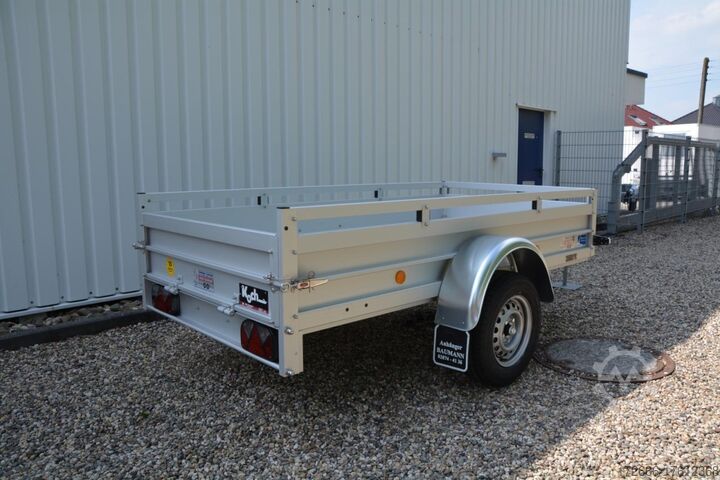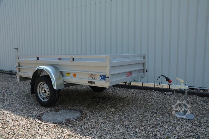 Hydraulics, automatic reverse, hot-dip galvanizing, unbraked, * IMMEDIATELY AVAILABLE * Technical data: - Type: New vehicle - Availability: Immediately!!! - TÜV: 3 years from first registration - Floor: Aluminum floor - Permissible total weight: 750 kg - Empty weight: 180 kg - Load capacity: 570 kg - Internal dimensions: 250 x 125 x 45 cm (L x W x H) - External dimensions: 359 x 179 x 45 cm (L x W x H) - Loading sill height: 50 cm - Tires: 185/70R13 - Brake: no - Support wheel: at extra charge - 100km/h: INCLUDED !!! - incl. vehicle documents (letter) Standard equipment: - Double-walled anodized aluminium drop sides 30 mm, with integrated aluminium frame - Drop side with load securing system Accessories such as lashing eyes can be easily mounted without drilling. - Stainless steel lashing rings (V2A stainless steel) - Sturdy screen-printed floor plate, non-slip (birch wood, waterproof glued) - Very sturdy locks for the tailgate made of V2A stainless steel (unique) - Maintenance-free, hot-dip galvanized rubber spring axle - Chassis and drawbar from renowned manufacturer ALKO - Safety indicator on the coupling - Steel mudguards - Tailgate can be easily removed - 13-pin plug - Reversing lights - Large reversing light - Steel mudguards plug - reversing light - large safety lighting - integrated rear fog light - lighting recessed in the rear frame - fitted with balanced 1A brand tires as standard - M8 stainless steel (V2A stainless steel) screw connection - clear operating sign with the most important data (tire pressure, cable assignment, etc.) - incl. transfer costs - incl. vehicle registration document Special equipment included in the price: - Full aluminum floor - Complete aluminum floor with ribbed surface. This means the floor lasts almost forever. Optional accessories available: - High front grille - Tarpaulin + bows - Supports, grilles, side wall attachments, nets, etc. New vehicle with warranty and TÜV. We are happy to offer you suitable financing !, Descriptions and pictures are protected by copyright !!! Over 800 trailers immediately available for you! We are for over 30 years Brian James / Humbaur / Hapert / Unsinn / Cheval Liberte / Koch / Debon / Stedele / TPV / Tohaco / Vezeko / Variant / Vlemmix - specialized dealer & repair - workshop - delivery Germany-wide with surcharge possible! Anhänger Zentrum BAUMANN GmbH Dinxperloer Str. 389 46399 Bocholt - Errors, omissions and prior sale reserved -