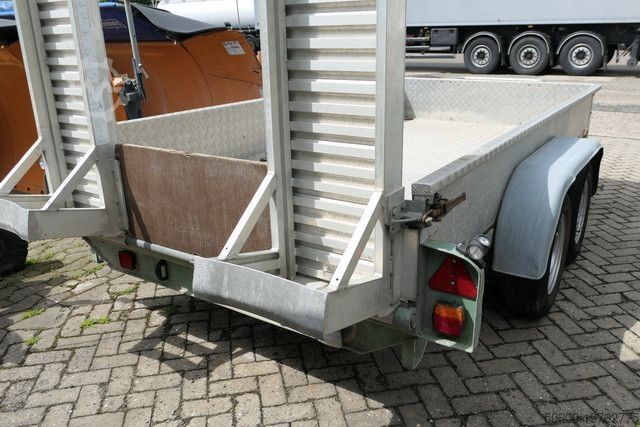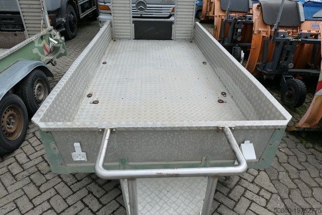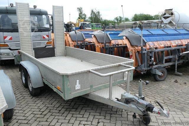 Прицеп для экскаватора, прицеп для машины с алюминиевым кузовом, 4 крепежных кольца с каждой стороны, алюминиевые аппарели длиной прибл. 1950x430 мм, оцинкованное шасси, ось(и) AL-KO, инерционный тормоз, ручной тормоз, опорное колесо, транспортное средство может быть покрыто рекламой и/или наклеено