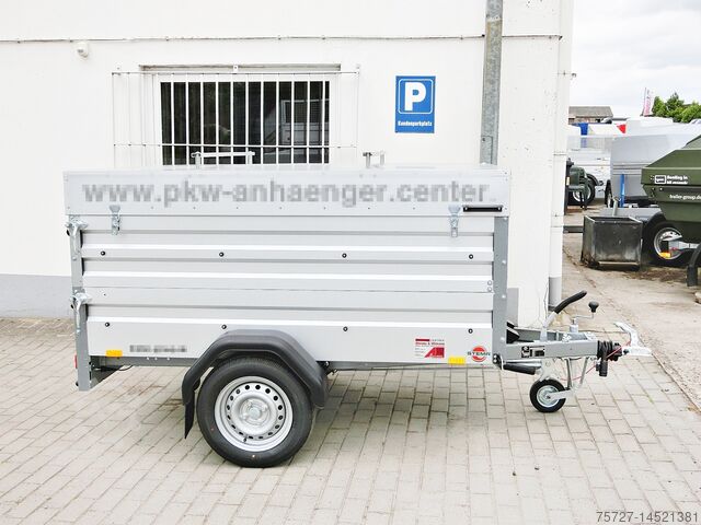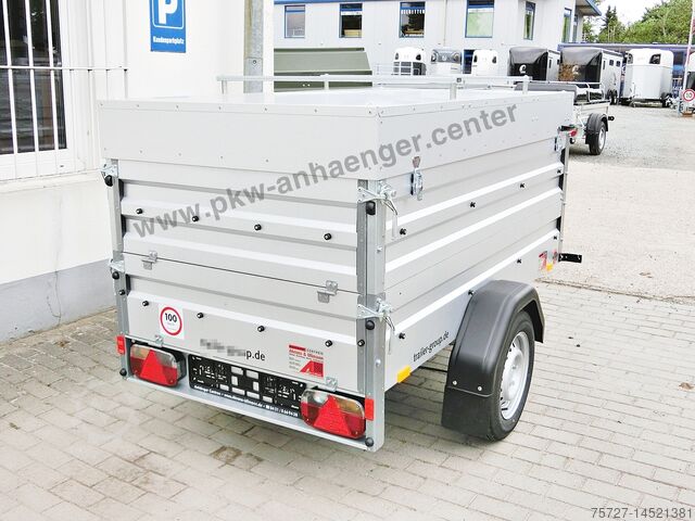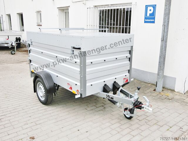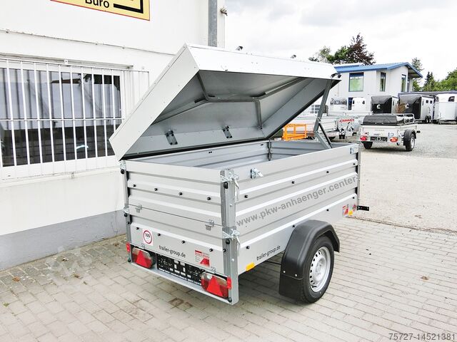 Small car trailer with lockable lid. Ideally suited for vacations, tools but also garden waste and small furniture as the lid can be removed. The steel lid is equipped with cross struts for ladders or 2 bicycles (e-bike only one).