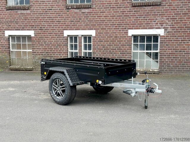 Hydraulics, automatic reverse, hot-dip galvanized, unbraked, * IMMEDIATELY AVAILABLE * Technical data: - Make: TPV Trailers - Model: TL-EB2-Offroad - Vehicle type: Box trailer - Vehicle condition: New vehicle - Initial registration: without initial registration - TÜV/HU: 2 years from initial registration - Internal dimensions (L x W x H): 202 x 107 x 35 cm - External dimensions (L x W x H): 308 x 165 x 90 cm - Loading height of floor: 50 cm - Perm. Total weight: 1.000 kg - Unladen weight: 240 kg - Payload: 760 kg - Chassis: Low loader (wheels next to the body) - Tires: 235/75R16 - Chassis: KNOTT rubber spring axle - Support wheel: Yes, automatic - 100km/h approval: Yes DESCRIPTION - Side walls made of 1.0 mm sheet steel - Round knobs mounted for net or tarpaulin - Continuous side members (4 pieces) - Screen-printed wooden floor, 15 mm continuous without joints, slip-resistant and waterproof - Eccentric locks for the tailgate - Galvanized V-drawbar - Aluminium chequer plate mudguards, reinforced and walkable - insertion option at all 4 corners for tarpaulin frames - 4 lashing lugs mounted on the inside of the floor - maintenance-free rubber spring axle from KNOTT - wheel shock absorbers fitted - 100 km/h manufacturer's approval - 13-pin plug - large safety lighting plug - large safety lighting - integrated rear fog light - lighting recessed in rear frame - automatic center support wheel New vehicle with warranty and TÜV. We are happy to offer you suitable financing !, Descriptions and pictures are protected by copyright !!! Over 800 trailers immediately available for you! We are for over 30 years Brian James / Humbaur / Hapert / Unsinn / Cheval Liberte / Koch / Debon / Stedele / TPV / Tohaco / Vezeko / Variant / Vlemmix - specialized dealer & repair - workshop - delivery Germany-wide with surcharge possible! Anhänger Zentrum BAUMANN GmbH Dinxperloer Str. 389 46399 Bocholt - Errors, omissions and prior sale excepted -