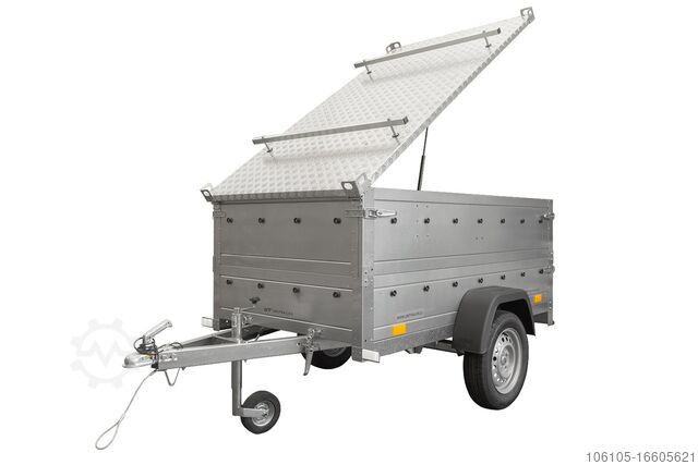 Car trailer Garden Trailer 200 KIPP with tiltable drawbar with a maximum permissible total weight of 750 kg. Here below we offer a brand new model in a set with a cover. As UNITRAILER we offer you a versatile trailer with a very good price-performance ratio.