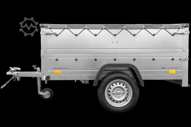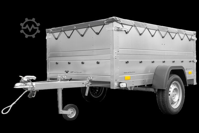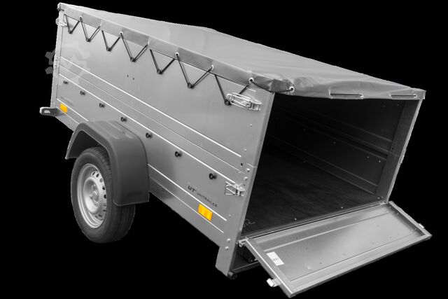 Tiltable 750 kg car trailer UNITRAILER Garden Trailer 201 KIPP with additional drop sides, support wheel and flat tarpaulin