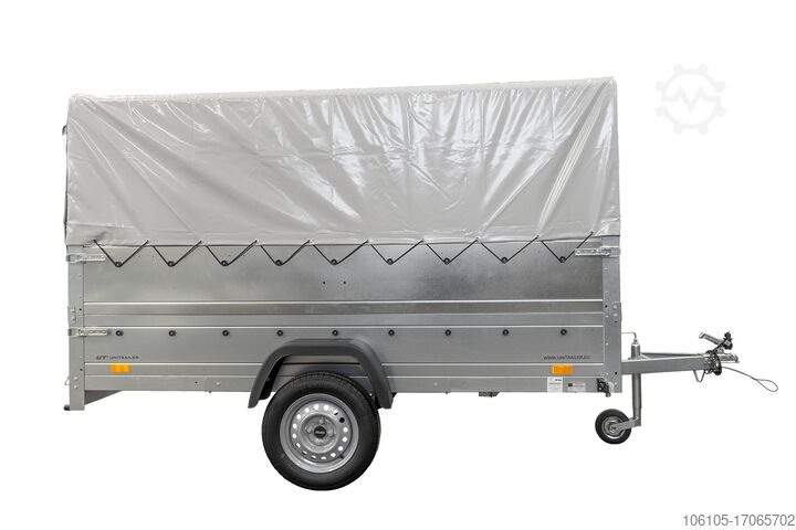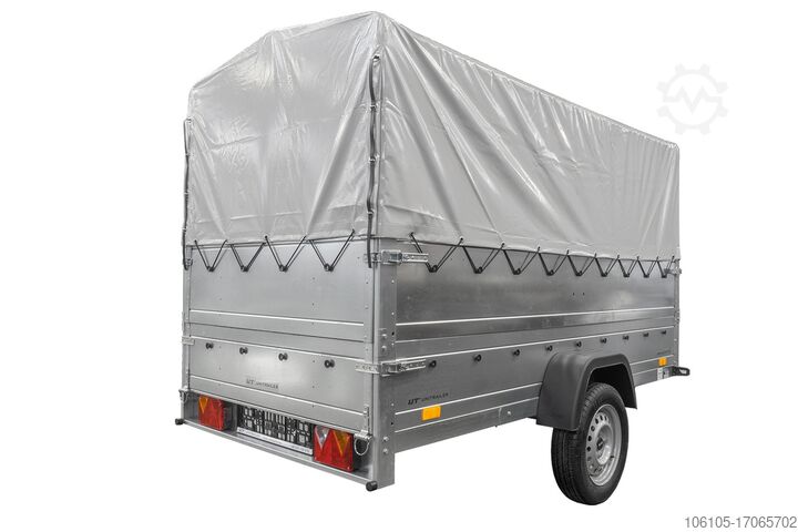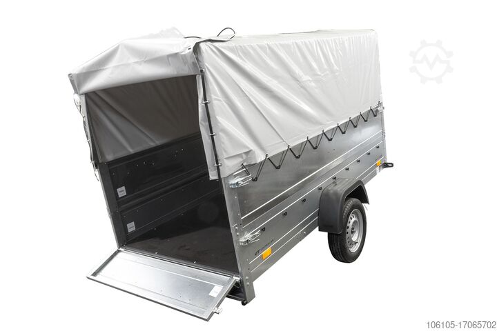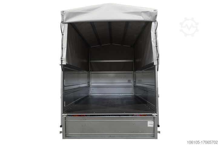 Car trailer with tarpaulin GARDEN TRAILER 264 KIPP [with support wheel, additional drop sides, high tarpaulin and high bows]