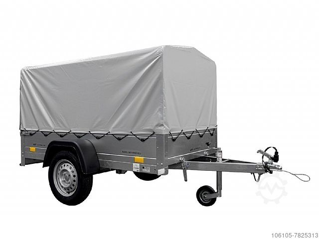 Low loader Garden Trailer 150 with high frame and high tarpaulin for cars, 150 x 106, 750kg