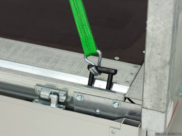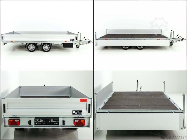 The hot-dip galvanized flatbed trailer is offered with high-quality equipment as standard. In addition to the overrun coupling and axles from brand manufacturer ALKO, this also includes practical recessed dropside locks and an automatic jockey wheel. The connection to the towing vehicle is established with a 13-pin plug. The rubber spring axle system ensures good driving characteristics even when the loading area is full. A 100 km/h registration is even possible for an extra charge. Benefit from our service and Germany-wide delivery!