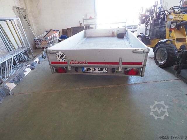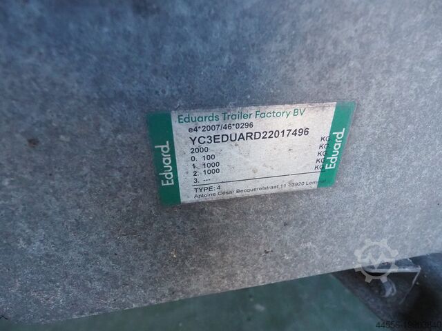 2-осный автоприцеп, открытый кузов, производитель: Eduards, модель: P4, дата первой регистрации: 10.02.2023, техосмотр до: 04/27, грузоподъемность: 2 000 кг, VIN: YC3EDUARD22017496, госномер: BOR - N 4006, оснащение: алюминиевая надстройка, опорное колесо.