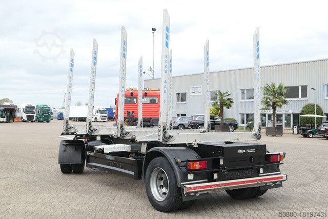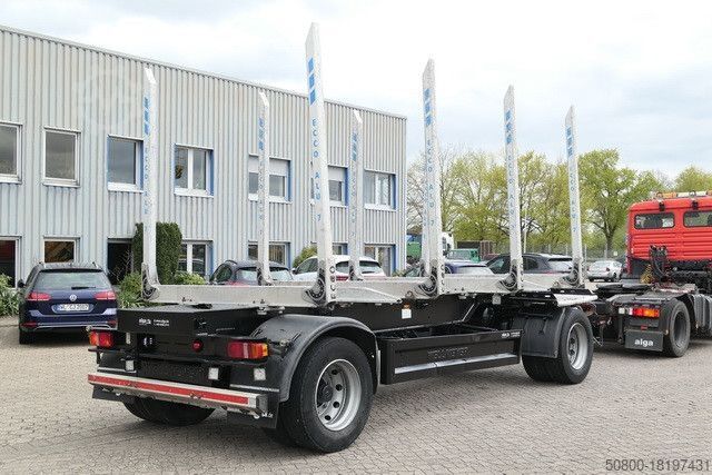 Транспортер древесины, алюминиевая система телескопических стоек ECCO, погрузочная площадка (L) 6500 мм, оси ABS, EBS, SAF, барабанная тормозная система, пневматическая подвеска с устройством подъема и опускания, сцепные головки Duo-Matic, транспортное средство можно накрыть и /или помечены рекламой