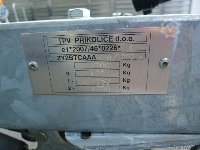 Data trailer: TPV boat trailer First registration: 27.05.2020 2-axles Permissible total weight 2,700 kg