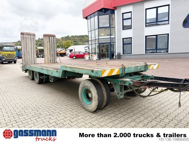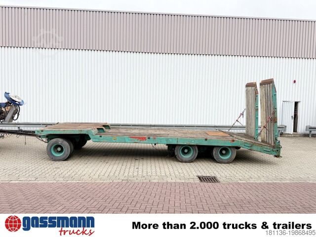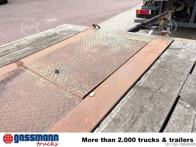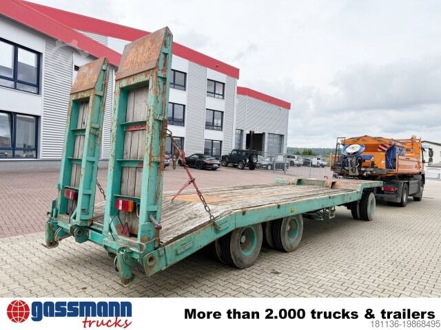 Vehicle location: Bovenden, leaf suspension, 3 axles, SAF axles, turntable, lashing rings, hydraulic ramps, rear support, twin tires. Superstructure: 3-axle low-loader trailer with hydraulic access ramps, 3x 10t SAF axles, drum brakes! Ramp length approx. 2250 mm! Loading height approx. 920 mm! ACCESSORY INFORMATION WITHOUT WARRANTY, subject to changes, prior sale, and errors!