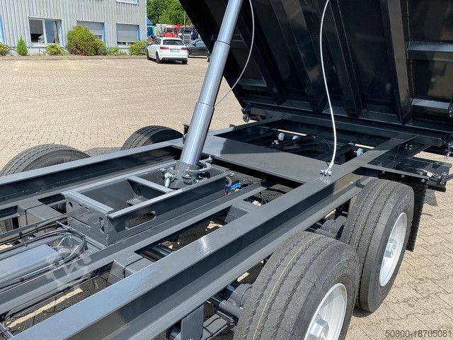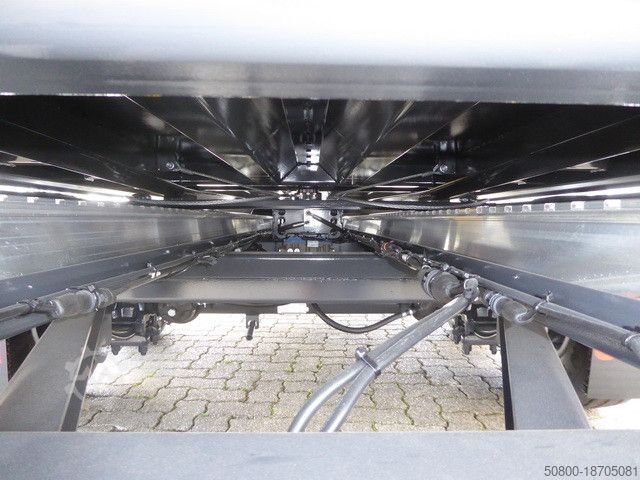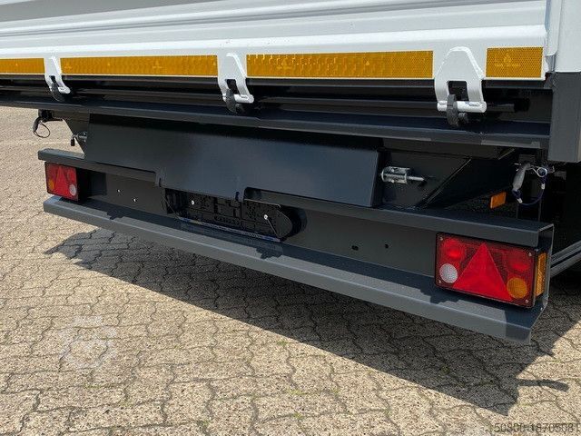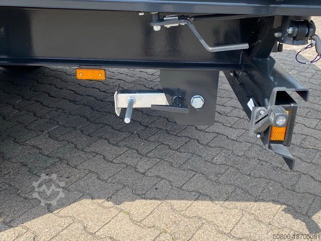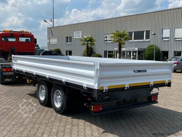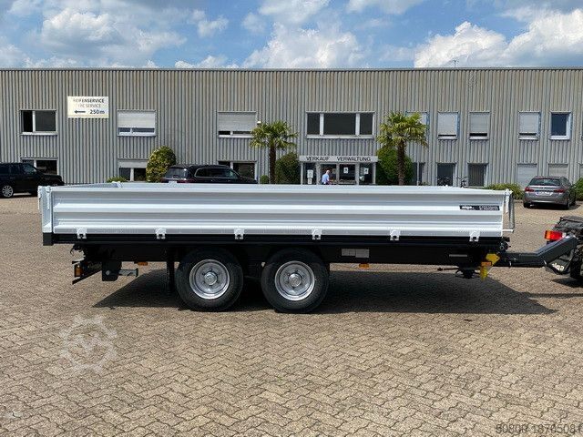 Гидравлическая система опрокидывания в 3-стороннем исполнении, высота загрузки: прибл. 940 мм, регулируемая высота дышла, винтовая буксирная проушина D = 40 мм, ABS, опорное устройство "Haacon", 2 складные опоры сзади, ось(и) Gigant, барабанная тормозная система, параболическая подвеска, светодиодные боковые габаритные фонари и фонари съезда с полосы движения, 2x7-контактных разъема, внешние стенки складывающиеся и съемные из стали, профилированной примерно 500 мм, лазерная сварка, маятниковые замки с центральным замком и пружинами закрытия боковых стенок, шариковые подшипники наклона спереди и сзади с шумоизоляцией, 2 болта подшипников наклона с защитой от переворачивания, 6 пар крепежных колец каждая с усилием крепления 5 т, установлены заподлицо в полу, вставной канал для въездных рамп с запирающейся крышкой, 2x противооткатных упора, алюминиевые рампы Altec длиной 3500x400 мм, грузоподъемность 8,7 т на колесной базе 2000 мм, без бортика и, следовательно, для Доступны колесные и гусеничные транспортные средства, транспортное средство может быть покрыто рекламой и/или иметь маркировку