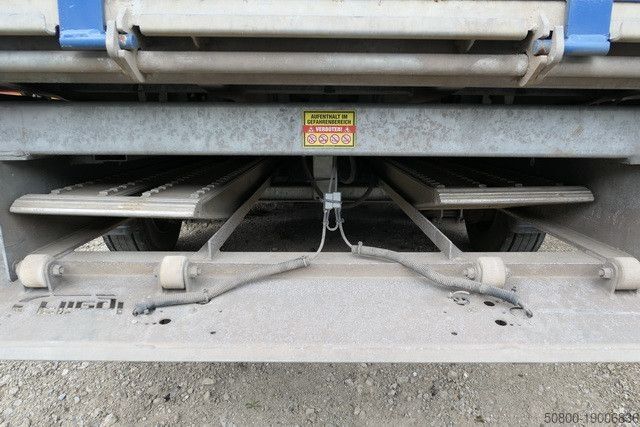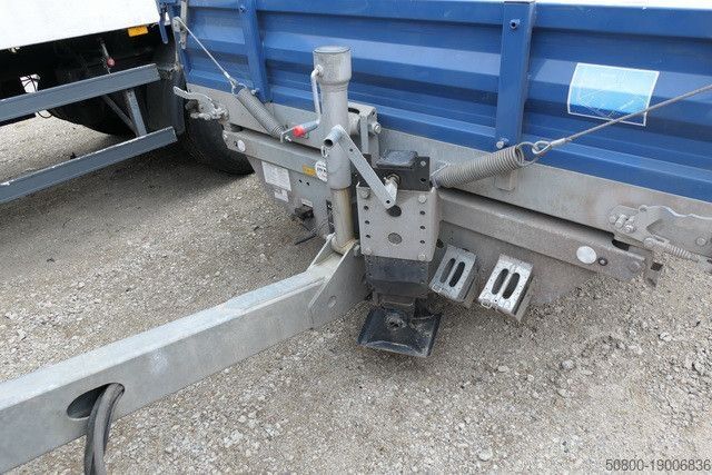 Трехсторонний кузов, оцинкованное шасси, стальные боковые стенки 460 мм, пол из листовой стали, 3 крепежных кольца с каждой стороны, под грузовой площадкой имеется встроенный запираемый отсек для погрузочных рамп, алюминиевые погрузочные рампы (ДxШ) 2900x350 мм, регулируемое по высоте дышло, опорное устройство Jost, 2 задние откидные опоры, ABS, EBS, ось(и) BPW, барабанная тормозная система, рессорная подвеска, транспортное средство может быть покрыто рекламой и/или наклеено