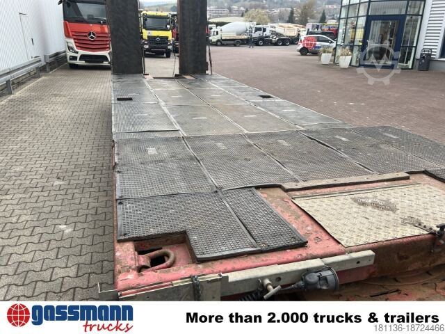 Vehicle location: Bovenden, 3-axle, BPW axles, turntable, leaf spring suspension, ABS (anti-lock braking system), extendable to 3m, lashing eyes, 2-part loading ramps, hydraulic ramps, rear support, aluminum side guards, twin tires, storage box.