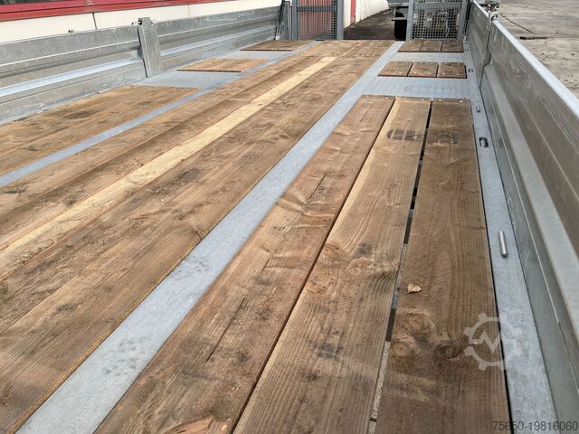 400 mm drop sides, steel drop sides, hot-dip galvanized, lateral with central stanchion, pluggable, chassis: hot-dip galvanized, wooden floor, 16 lashing eyes in the outer frame, rear slanted, 2 x ramps each 3,000 mm long x 725 mm wide, ramps with spring lifting mechanism, ramps with gratings also available in wood! Loading height: 880 mm, , Also available in loading area length 6.70 m Immediately available, , Rental price from 580 Euro, , -- Misprints, errors and changes excepted, Sample pictures --, More data under: !, More Details: !