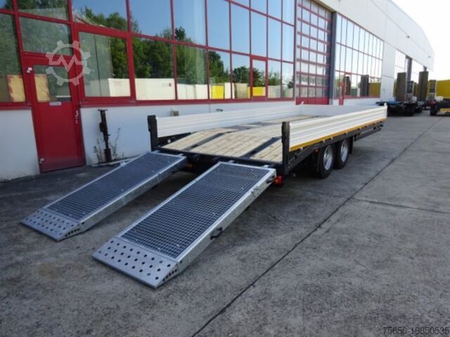 each ramp approx. 2,700 mm long x 900 mm wide, ramps with gratings, loading height: 840 mm, 12 lashing eyes each 2.5 t, 8 x lashing eyes each 6 t, steel drop sides, foldable and removable, wooden planks 50 mm, loading area rear beveled, loading area width inside 2.480 mm, rear stanchion removable, front for through-loading, , Also available in 5,300 mm loading area length!!!, , Rental price from 550 ¤, , -- Misprints, errors and omissions excepted, sample pictures --, More data under: !, More Details: !