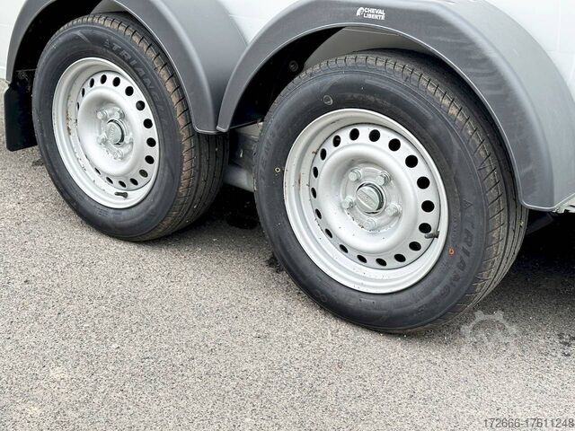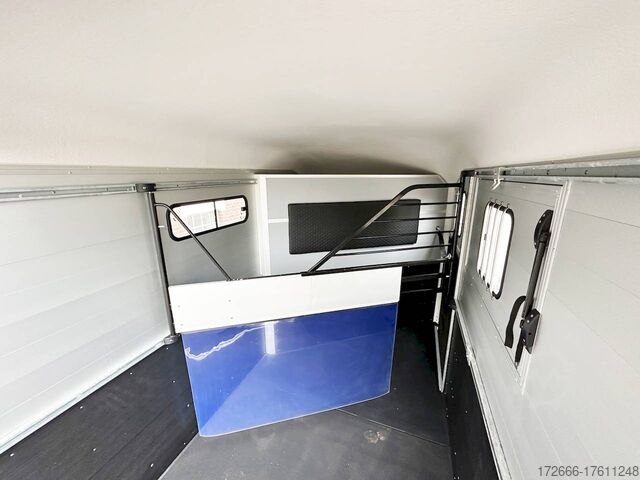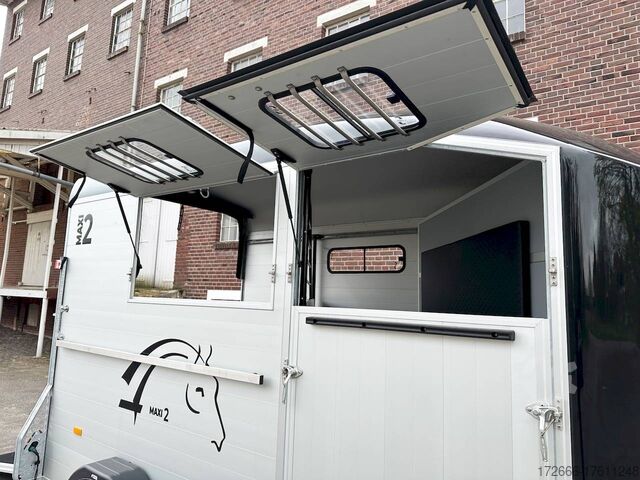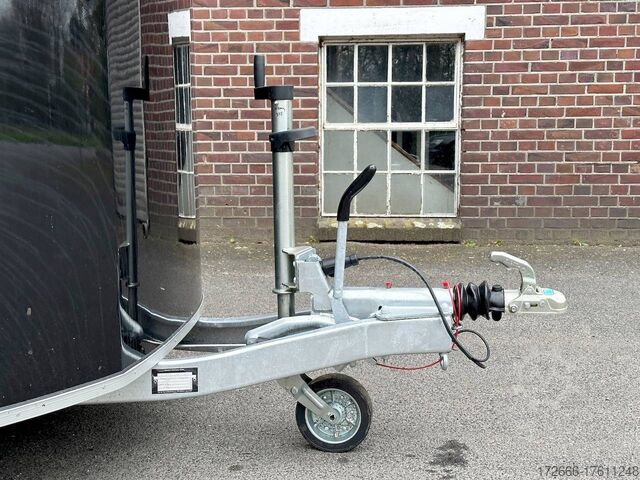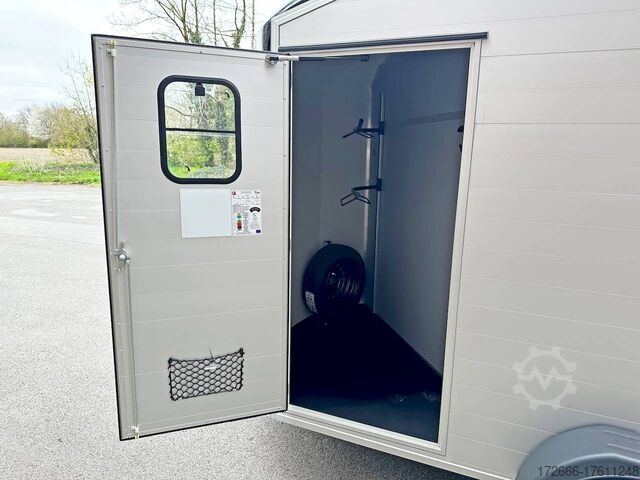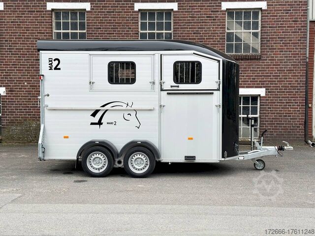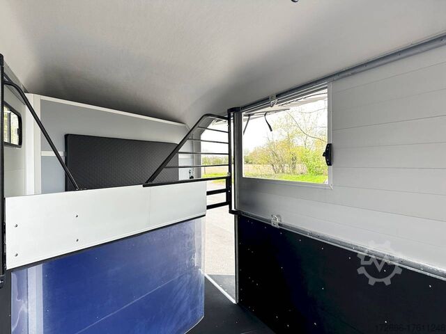 Hydraulics, automatic reverse drive, hot-dip galvanizing, * IMMEDIATELY AVAILABLE * Technical data: - Type: New vehicle - TÜV: New/2 years - Availability: IMMEDIATELY AVAILABLE - Number of animals: 2 - Gross vehicle weight: 2.600kg - Unladen weight: 980 kg - Payload: 1,620 kg - Interior dimensions: 378 x 181 x 240 cm (L x W x H) - Overall exterior dimensions: 503 x 229 x 268 cm (L x W x H) - Brake: yes - Support wheel: yes - Automatic with comfort handle - 100km/h: Included! - incl. vehicle documents Vehicle superstructure: - Floor: ALUMINIUM floor - Side walls/body: Anodized double-walled aluminium - Roof material: full polyester - Colour: black - Tack room: yes - Tack room equipment: luggage net, saddle holder, make-up mirror, bridle holder, lockable door, door lock - Feed troughs: no - Chassis: Pullmann 2 independent suspension with coil spring and shock absorber - Height of stall bars: -- Partition walls - Distance between partition walls: adjustable - Tailgate material: approx. 1000kg load capacity, rubber with tread strips and anti-slip - Tailgate function: hinged door and tailgate combination - Drain flap: yes, wide at the front - Overrun device & brake: KNOTT - Plug lighting: 13-pin - Approval: COC papers, approval with green license plate possible for sports purposes Standard equipment: - Pullmann2 chassis independent wheel suspension with coil spring - incl. wheel shock absorbers Wheel shock absorber (100 km/h) - Aluminum floor - Aluminum walls - External tie-down option - Internal tie-down option - Adjustable and telescopic partition walls with head grille - PVC transparent partition wall - Individual wheel mudguards, plastic (black) - drain flap at front - side opening flaps - many sliding windows - rubber glued to floor and sealed - hay rack - step protection on side walls (GRP plastic) - maneuvering handle - spare wheel with holder - tarpaulin roller blind as net - lifting device gas pressure shock absorber on tailgate - step on rear flap - 3rd brake light on rear flap - light on rear flap - light on rear flap - light on rear flap - light on rear flap. Brake light on rear flap - Lighting system with reversing light - 13-pin plug Accessories can be retrofitted - please enquire: - Cover for automatic jockey wheel - Anti-sway hitch - Weight reduction to different total weight - Aluminum rims - Approach mirror - Climbing aid - Storage bracket for saddle (KTL-coated) - Feed trough for hanging with holder - Video surveillance system incl. reversing camera - Anti-theft device New vehicle with warranty and TÜV. We are happy to offer you suitable financing !, Descriptions and pictures are protected by copyright !!! Over 800 trailers immediately available for you! We are for over 30 years Brian James / Humbaur / Hapert / Unsinn / Cheval Liberte / Koch / Debon / Stedele / TPV / Tohaco / Vezeko / Variant / Vlemmix - specialized dealer & repair - workshop - delivery Germany-wide with surcharge possible! Anhänger Zentrum BAUMANN GmbH Dinxperloer Str. 389 46399 Bocholt - Errors, omissions and prior sale excepted -