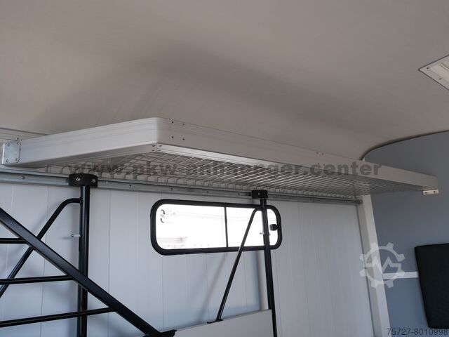 Safe loading of the horses through a flat ramp flap, which can also be set up as a door, reduces the risk of injury when loading and unloading.
