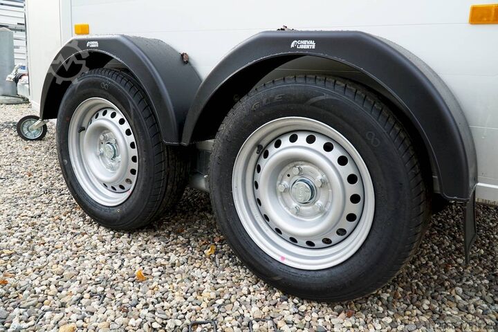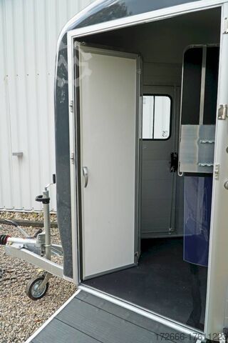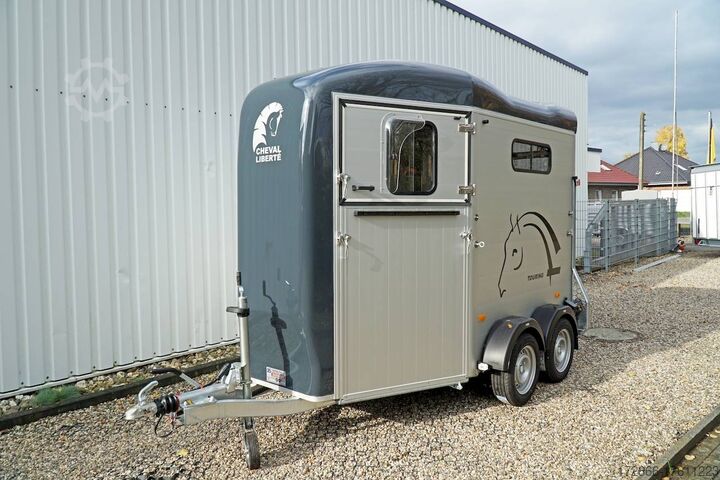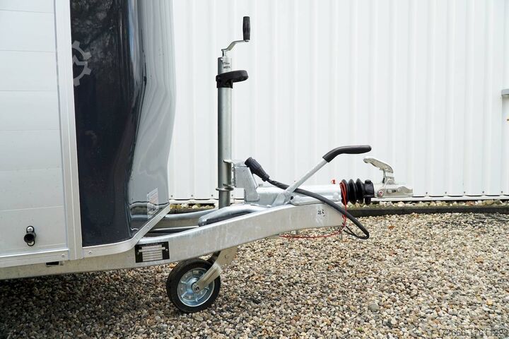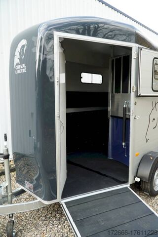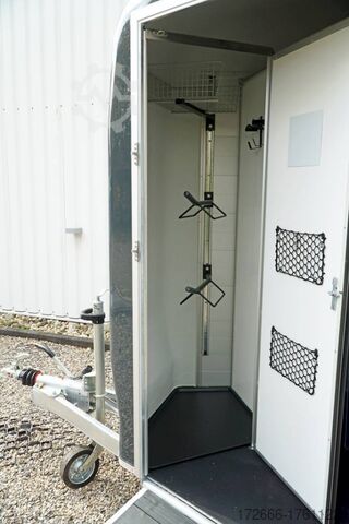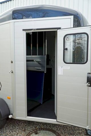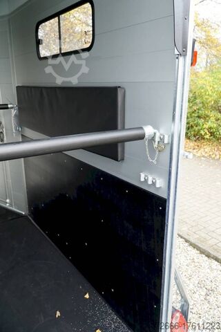 Hydraulics, automatic reverse drive, hot-dip galvanizing, * IMMEDIATELY AVAILABLE * Technical data: - Type: New vehicle - TÜV: New/2 years - Availability:* IMMEDIATELY AVAILABLE * - Number of animals: 2 - Gross vehicle weight: 2.600kg - Unladen weight: 900 kg - Payload: 1,700 kg - Interior dimensions: 320 x 167 x 230 cm (L x W x H) - Overall exterior dimensions: 447 x 215 x 268cm (LxWxH) - Tires: 185/65R14 steel rim - Brake: yes - Support wheel: yes - Automatic with comfort handle - 100km/h: Included! - incl. vehicle documents Vehicle body: - Floor: ALUMINIUM floor - Drop sides/body: Anodized double-walled aluminium - Roof material: Full polyester - Tack room: Yes - Tack room equipment: Storage basket, luggage net, adjustable saddle holder, make-up mirror, bridle holder, lockable door, door lock - Feed troughs: optional - Chassis: Pullmann 2 independent suspension with coil spring and shock absorber - Height of stall bars: approx. 102 and 122cm - Distance between stall bars: approx. 175 and 187cm - Tailgate material: approx. 1000kg load capacity, rubber with tread strips and anti-slip - Tailgate function: Hinged door and tailgate combination - Drain flap: Yes, front with tread strips - Overrun device & brake: KNOTT - Lighting plug: 13-pin - Registration: COC papers, registration with green license plate possible for sports purposes Standard equipment: - Pullmann2 chassis independent wheel suspension with coil spring - incl. wheel shock absorber Wheel shock absorber (100 km/h) - Aluminum floor - Aluminum walls - Tethering option outside - Tethering option inside - Split stall bars with plastic protection - Center post partition, front and rear pivoting, removable - Height adjustment for stall bars - Depth adjustment for stall bars - Panic release at front - Fixed head grille and removable privacy screen - High side access door - Lockable access door - Door retainer on access door - Single wheel mudguards, (black) - Rubber glued to floor and sealed - Hay net hooks - Side padding (2 pieces) - Step protection on side walls (GRP plastic) - Tarpaulin roller blind as net - Maneuvering handle - Lifting device gas pressure shock absorber on tailgate - Step on rear flap - 3rd brake light on rear flap - Light on rear flap - Light on rear flap - Light on rear flap - Light on rear flap. 3rd brake light on rear flap - Lighting system with reversing light - 13-pin plug Special equipment included in the price: - Tack room inside with: Adjustable saddle holder, net, mirror, bridle holder, storage basket Accessories can be retrofitted - please enquire: - Cover for automatic jockey wheel - Spare wheel with holder - Spare wheel cover - Anti-sling hitch - Weight reduction to different total weight - Aluminum rims - Approach mirror - Climbing aid - Saddle rack (KTL-coated) - Additional interior light - Foal grille - Feed trough for hanging with holder - Chest bar pad - Box bar continuous, padded (rear) - Full-length, padded stall rail (front) - Wear mat/scratch mat - Video surveillance system incl. reversing camera New vehicle with warranty and TÜV. We are happy to offer you suitable financing !, Descriptions and pictures are protected by copyright !!! Over 800 trailers immediately available for you! We are for over 30 years Brian James / Humbaur / Hapert / Unsinn / Cheval Liberte / Koch / Debon / Stedele / TPV / Tohaco / Vezeko / Variant / Vlemmix - specialized dealer & repair - workshop - delivery Germany-wide with surcharge possible! Anhänger Zentrum BA