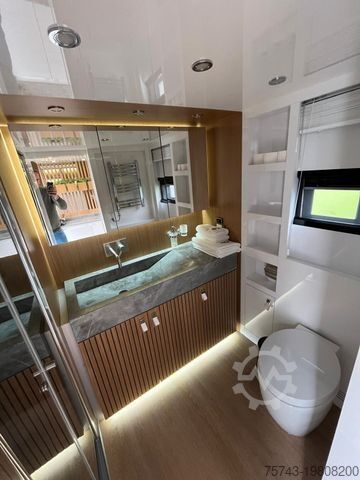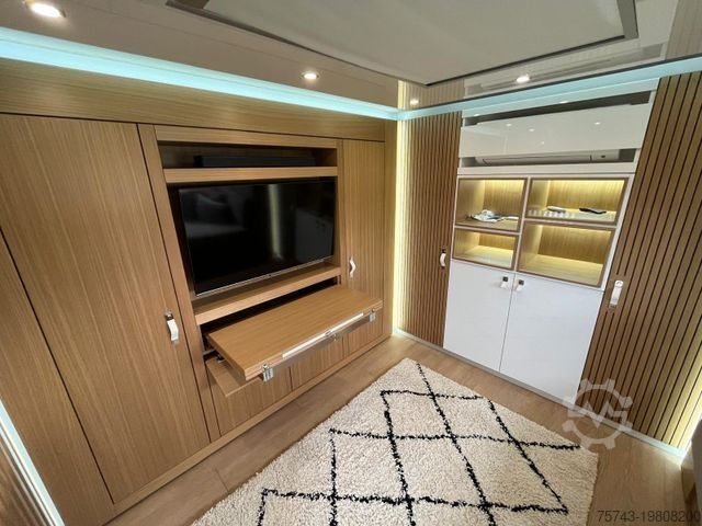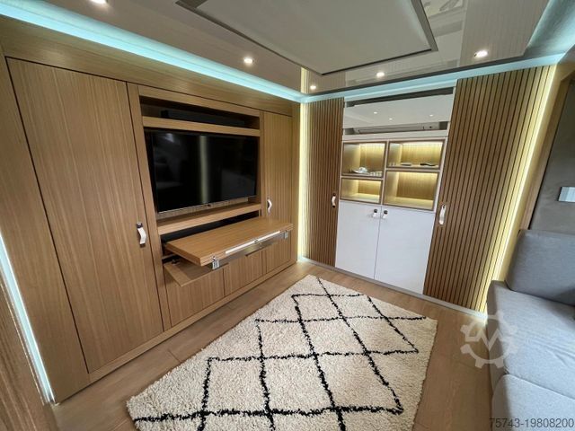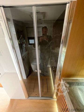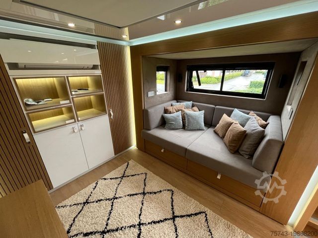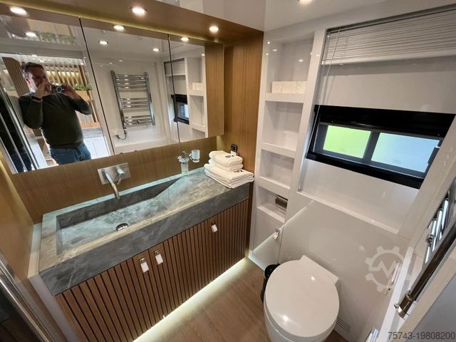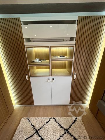 3–4 sleeping berths, fully equipped apartment, seating area, large bathroom with shower, refrigerator, air conditioning, microwave, washbasin, WC, diesel parking heater, Victron charger, and much more.