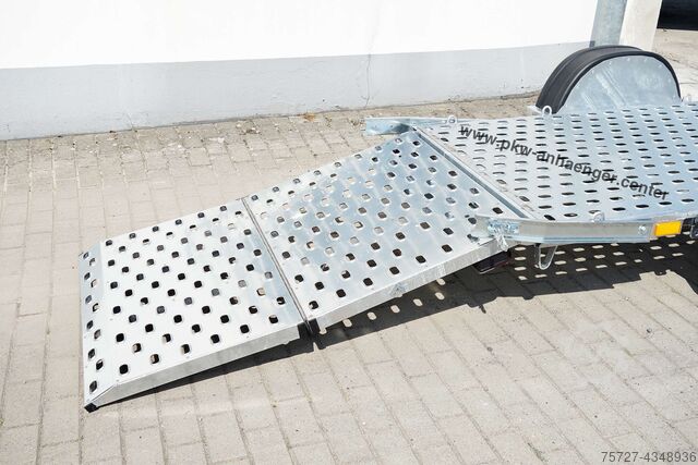 The motorcycle can be safely driven or pushed directly onto the car trailer. The motorcycle rocker on the motorcycle trailer can be adjusted on the rocker and also directly on the loading area.