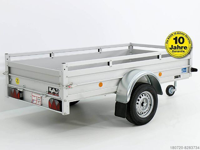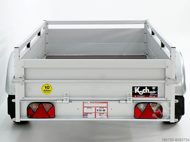 Type U4 car trailer with a loading dimension of 125 x 250 x 45cm. Lightweight aluminum trailer with a permissible total weight of 750kg and a payload of 570kg including a 10-year warranty. Koch-Anhängerwerke has been manufacturing quality trailers made in Germany for over 30 years.