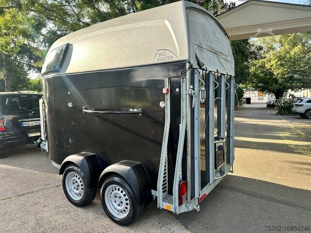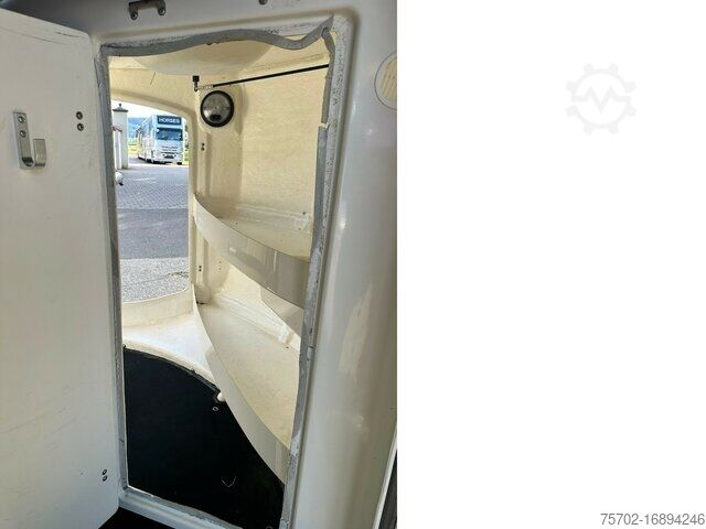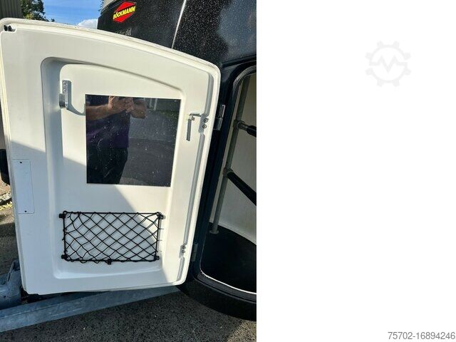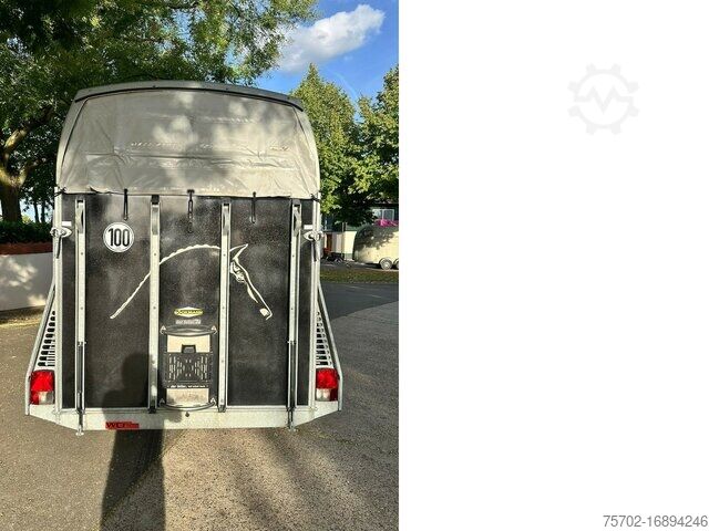 partition wall, spare wheel, 2 horses opening windows rear ramp tarpaulin roller blind rubber floor aluminum floor step protection rubber partition wall feed trough outer stirrup tack room saddle and bridle holder 100 km/h approval spare wheel permissible total weight 2,400 kg FOR US THE CONDITION AND THE FEEL OF THE BUILDING IS DECISIVE, THE PRICE IS IN SECOND PLACE If you have any further questions, please contact Mr. Faller on the number. //*EXCHANGE, PAYMENT ACCEPTANCE OR RENTAL OF YOUR VEHICLE, AS WELL AS FINANCING POSSIBLE! All information without guarantee* Further offers can be found on our homepage: The description and data given do not constitute a guarantee and are not binding. The contract of sale concluded at the dealership when the vehicle is purchased is binding. Subject to errors and prior sale!