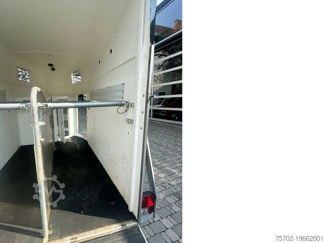 2-horse, rear ramp, windows, tack room, saddle holders, 100 km/h approval, camera system, tarpaulin roller blind, aluminum floor, new tires, spare wheel, excellent condition, gross vehicle weight 2,400 kg. FOR US, THE CONDITION AND GUT FEELING ARE DECISIVE, PRICE IS SECONDARY. For further questions, Mr. Faller will be happy to assist you at the following number. *TRADE-IN, PART EXCHANGE, OR FINANCING OF YOUR VEHICLE IS POSSIBLE! All details without guarantee.* More offers can be found on our homepage. The description and stated data do not constitute a guarantee and are not binding. The purchase contract concluded at the dealership upon purchase of the vehicle is decisive. Errors and prior sale excepted!