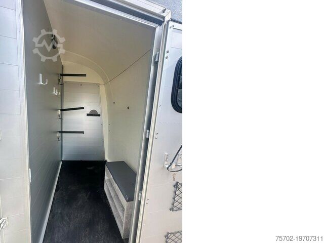2-horse aluminum body, sliding windows, roof hatch, rear ramp, rubber flooring, rubber partition wall, tarpaulin lift, storage compartment, tack room, saddle and bridle rack, 100 km/h approval, aluminum floor, as-new tires, WCF-Plus chassis, permissible total weight 2,700 kg. FOR US, THE CONDITION AND OVERALL FEEL ARE DECISIVE; THE PRICE COMES SECOND. For further questions, Mr. Faller will be happy to assist you at the following number. //*TRADE-IN, PART-EXCHANGE OR COLLATERALIZATION OF YOUR VEHICLE, AS WELL AS FINANCING POSSIBLE! All information without guarantee* More offers can be found on our homepage: The description and specified data do not constitute a warranty and are not binding. Only the contract of sale concluded at the dealership upon purchase of the vehicle is binding. Errors and prior sale excepted!