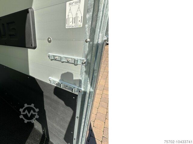 , 2 horses Hood color: Black Metallic Aluminum horse trailer door-ramp combination Kick guard on the outside of the tailgate Tread strips on the ramp Plastic kick guard Rubber partition wall Hinged window with grille protection Transparent roof hatch Large door Lockable tack room with two saddle and two bridle holders Interior lighting Box bars adjustable in height and length Aluminum construction with aluminum floor Aluminum floor with 8 mm rubber mat with linen layer in the middle Interior dimensions 340x171x245 cm Black designer fenders Automatic rear tarpaulin Winter tarpaulin Automatic jockey wheel Steel rims 195/65 R15 Permissible total weight 2,500 kg Extras: Load rating up to 2,500 kg plus €167.00 net Tack room with Sirius holder plus €780.00 net Divisible partition wall plus €420.00 net Shock absorber plus €188.00 net Chest padding plus €167.00 net FOR US, THE CONDITION AND OUR GUT FEELING ARE DECISIVE, THE PRICE COMES SECOND. Purchase price plus €15.00 net vehicle documents. If you have any further questions, please do not hesitate to contact Mr. Faller on the number. //*EXCHANGE, TRADE-IN OR LOAN FOR YOUR VEHICLE, AS WELL AS FINANCING POSSIBLE!All information without guarantee* You can find further offers on our homepage: The description and data provided do not represent a guarantee and are not binding. The purchase contract that is concluded in the car dealership when purchasing the vehicle is binding. Errors and prior sale reserved!