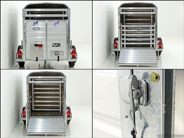 Ifor Williams sheep and calf trailer in aluminium with galvanized steel frame roof bar. Ideal for sheep, calves and goats.