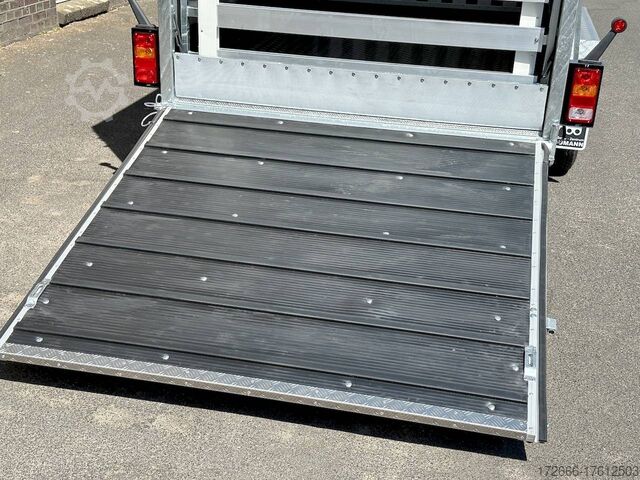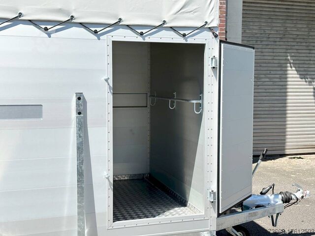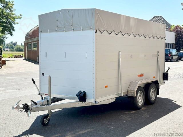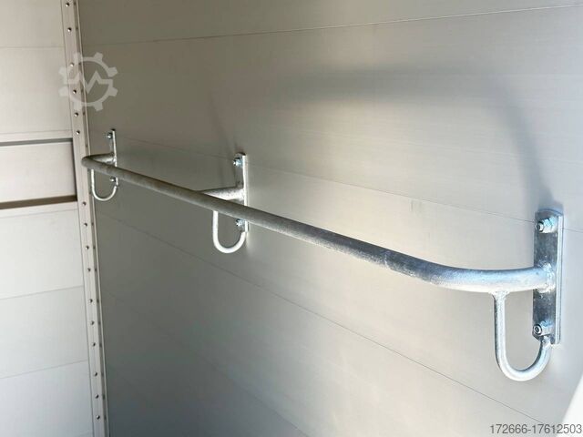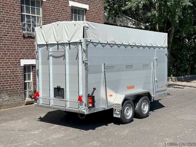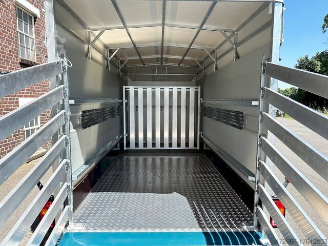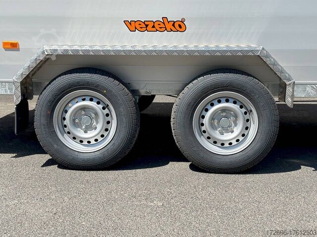 Hydraulics, automatic reversing, hot-dip galvanizing, * IMMEDIATELY AVAILABLE * VEZEKO VT 3500 RAMP/ DOOR COMBI I DRIVE GRID CROSS WALL 400X170X190CM VIEHANHÄNGER RAMPENGUMMI 3XLÜFTUNG INNENLEUCHTE TECHNICAL DATA: - Make: Vezeko - Model: VT 3500 - Vehicle type: Livestock trailer - Vehicle condition: New vehicle - Initial registration: Without initial registration - TÜV/HU: 2 years from initial registration - Internal dimensions (L x W x H): 400 x 170 x 190 cm - External dimensions (L x W x H): 572 x 224 x 260 cm - Floor loading height: 51 cm - Perm. Total weight: 3,500 kg - Unladen weight: 1,178 kg - Payload: 2,322 kg - Chassis: Low loader (wheels next to the body) - Tires: 185R14C - Chassis: ALKO rubber spring axle - Support wheel: Yes, automatic - 100 km/h approval: Optional, can be retrofitted EQUIPMENT: - Brake: Yes - Number of axles:-2 - Floor: Aluminium chequer plate trough on wooden multiplex plate - Walls material: Double-walled anodized aluminium - Roof material: Tarpaulin - Number of animals:2 - Suitable for livestock types: Sheep, goats, small cattle, large cattle, calves, pigs - Overrun device/brake: ALKO - Galvanization: hot-dip galvanized - Drawbar: V-drawbar, bolted, C-profile - Fenders: aluminium chequer plate fenders - Standing area: 6.8 m - Double deck:No - Driving gate: Yes - Cross partition inside: Yes - Windows:Sliding side window, barred - Front exit: No - Rear door / hatch material: Aluminum, rubber-covered and tread strips - Interior light: Yes, rear - Rear lighting: Incandescent, lamps recessed in side struts - Side lighting: Rear track lights - Plug for lighting: 13-pin - Vehicle documents: COC papers DESCRIPTION: - Aluminum checker plate tub edged, welded on screen-printed wooden floor - Reinforced sturdy bolted V-drawbar - Very sturdy welded steel frame - Frame compl. hot-dip galvanized - many cross members for high point loading - anodized aluminium walls, double-walled 25 mm - tie-down option, with bar and 3 tie-down rings - access door on the right in the direction of travel with 2 robust angle lever locks - solid, hot-dip galvanized welded tarpaulin frame - ventilation opening at the front - 2 side struts for additional stability - one pair of ventilation openings on the left and right sides, barred from the inside - rear portal, rear portal, continuously welded, hot-dip galvanized in solid design - tailgate with flap - door combination - interior light at the rear with switch - tarpaulin completely closed at the rear over tailgate, with tensioning rubbers - non-slip rubber on the loading flap with integrated tread strips - 1400mm drive grid, rear, aluminium swivelling - 1400mm cross partition wall, aluminium, infinitely adjustable - maintenance-free rubber spring axle from ALKO - automatic reverse drive - ALKO overrun device and parking brake - 13-pin plug - return driving licence from ALKO. plug - reversing lights - large dimensioned safety lighting - integrated rear fog light - rear lane departure warning lights - automatic support wheel in the middle Accessories can be retrofitted - please enquire: - 100km/H approval with wheel shock absorber - reversing lights - dust box New vehicle with warranty and TÜV. We are happy to offer you suitable financing !, Descriptions and pictures are protected by copyright !!! Over 800 trailers immediately available for you! We are for over 30 years Brian James / Humbaur / Hapert / Unsinn / Cheval Liberte / Koch / Debon / Stedele / TPV / Tohaco / Vezeko / Variant / Vl