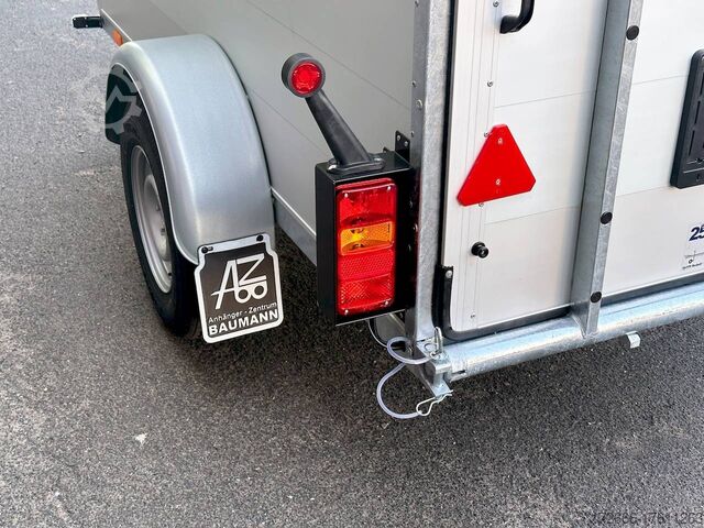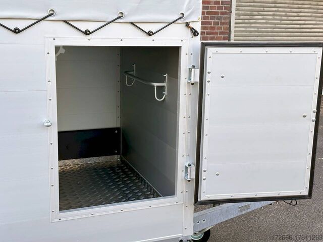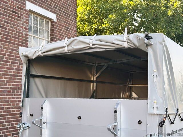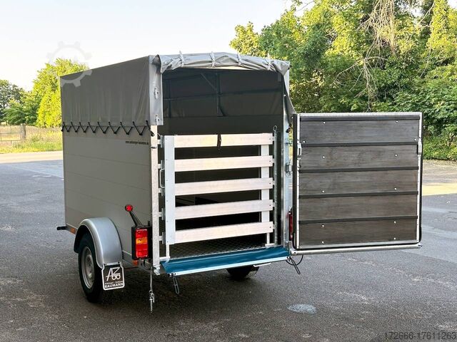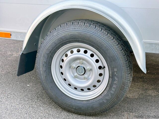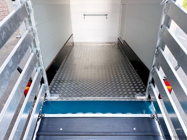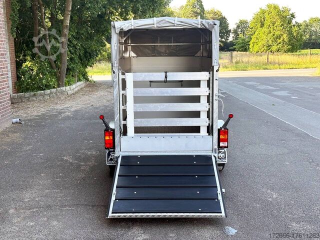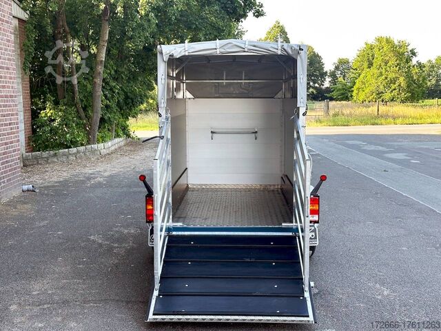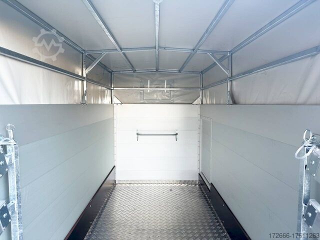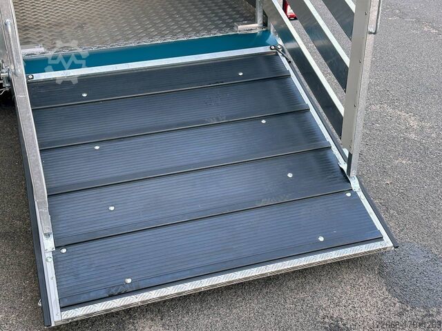 Hydraulics, automatic reverse, hot-dip galvanizing, * IMMEDIATELY AVAILABLE * VEZEKO VT MINI 13.25 ALU RAMP/ DOOR COMB I DRIVING GRID 248X126X160CM VIEHANHÄNGER RAMPENGUMMI INNENLEUCHTE TECHNICAL DATA: - Make: Vezeko - Model: VT MINI 13.25 - Vehicle type: Livestock trailer - Vehicle condition: New vehicle - Initial registration: Without initial registration - TÜV/HU: 2 years from initial registration - Internal dimensions (LxWxH): 248 x 126 x 160 cm - External dimensions (LxWxH): 407 x 179 x 225 cm - Loading height of floor: 51 cm - Perm. Total weight: 1,300 kg - Unladen weight: 554 kg - Payload: 746 kg - Chassis: Low loader (wheels next to the body) - Tires: 185R14C - Chassis: ALKO rubber spring axle - Support wheel: Yes, automatic - 100 km/h approval: Optional, can be retrofitted EQUIPMENT: - Brake: Yes - Number of axles: 1 - Floor: Aluminum checker plate trough on wooden multiplex plate - Walls material: Double-walled anodized aluminum - Roof material: Tarpaulin - Number of animals: 2 - Suitable for livestock types: Sheep, goats, small cattle, calves, pigs - Overrun device/brake: ALKO - Galvanization: hot-dip galvanized - Drawbar: V-drawbar, bolted, C-profile - Mudguards: Steel mudguards - Standing area: 3.1 m - Double deck: No - Driving gate: Yes - Internal cross partition: Optionally available - Windows: Optional ventilation flaps - Front exit: No - Rear door / hatch material: Aluminum, rubber-covered and tread strips - Interior light: Yes, rear - Rear lighting: Incandescent - Side lighting: Rear track lights - Plug for lighting: 13-pin - Vehicle documents: COC papers DESCRIPTION: - Aluminum checker plate tub, folded, welded on screen-printed wooden floor - Reinforced, sturdy bolted V-drawbar - Very sturdy welded steel frame - Frame compl. Frame completely hot-dip galvanized - Many cross members for high point loading - Anodized aluminium walls, double-walled 25 mm - Tie-down option with bar and 3 tie-down rings - Access door on the right in the direction of travel with robust angle lever lock - Solid, hot-dip galvanized, welded tarpaulin frame - Ventilation opening in tarpaulin can be rolled up at the front - Rear portal, continuously welded, hot-dip galvanized in solid design - tailgate with flap - door combination - interior light at the rear with switch - tarpaulin completely closed at the rear via tailgate, with tensioning rubbers - non-slip rubber on the loading flap with integrated tread strips - drive grid 1000mm, rear, aluminium swivelling - maintenance-free rubber spring axle from ALKO - automatic reverse drive - ALKO overrun device and parking brake - 13-pin plug - return driving licence - ALKO parking brake - parking brake - parking brake - parking brake. plug - reversing lights - large safety lights - integrated rear fog light - rear lane departure warning lights - automatic support wheel in the middle - accessories can be retrofitted - please enquire: - 100km/H approval with wheel shock absorber - transverse separation - interior light - reversing lights - storage box New vehicle with warranty and TÜV. We are happy to offer you suitable financing !, Descriptions and pictures are protected by copyright !!! Over 800 trailers immediately available for you! We are for over 30 years Brian James / Humbaur / Hapert / Unsinn / Cheval Liberte / Koch / Debon / Stedele / TPV / Tohaco / Vezeko / Variant / Vlemmix - specialized dealer & repair - workshop - delivery Germany-wide with surcharge possible! Anhänger Zentrum BAUMANN G