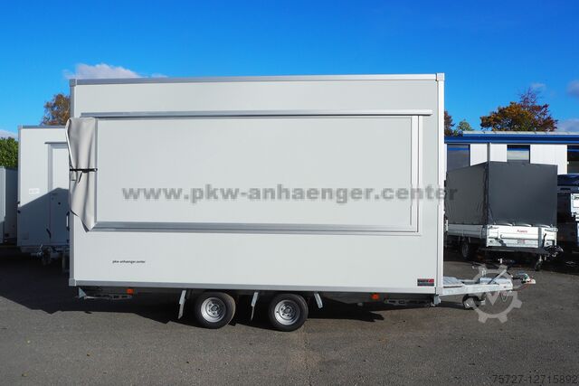 Sturdy and high-quality sales trailer as a high loader for snacks or goods.