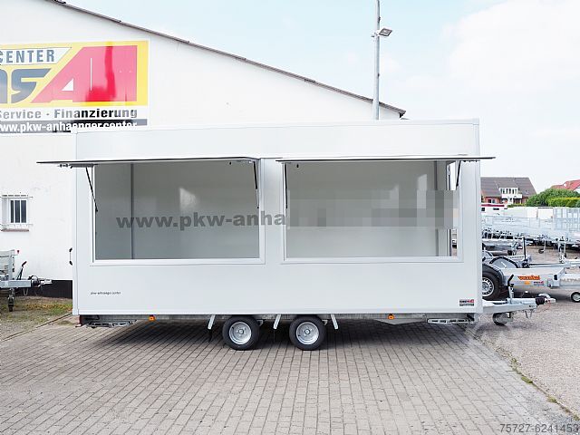 Sturdy and high-quality sales trailer as a high loader for snacks or goods.