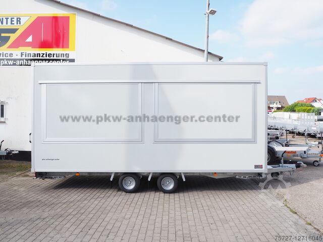 Sturdy and high-quality sales trailer as a high loader for snacks or goods.